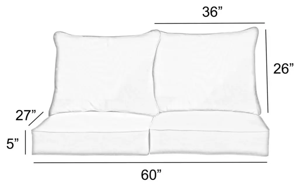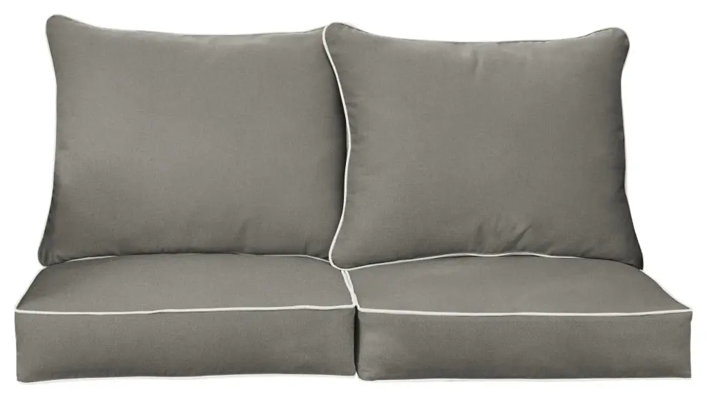 Soak in the sunshine on your porch or patio with the help of this cozy loveseat pillow and cushion set! Featuring a timeless solid fabric in a rich, Gray hue, this pillow set is sure to add style to your space and make you enjoy the outdoors so much more! Crafted out of a performance material right here in North America, these pillows are built to withstand sun, stains and weather so that you can enjoy them worry-free! Sunbrella is founded on the belief that fabrics should be both beautiful and functional. We began in the 1960s with the challenge of creating an awning canvas with a substantially longer lifespan than cotton. Sunbrella has become widely adopted for shade structures, marine canvas and upholstery fabric for both outdoor and indoor applications.Our textiles are made with close attention to design detail, and engineered with robust performance characteristics that provide resistance to fading and degradation from sunlight and chemical exposure. The fabric is tactile yet durable, has industry-leading environmental characteristics, is easy to care for and offers long life - wherever it''s used.No Sunbrella manufacturing facility in the world sends waste to landfills. A result of our focus on efficiency, this monumental achievement allows Sunbrella to lead by example, putting sustainability into practice every day across the globe. Our unique coloring process not only makes Sunbrella fabrics fade-resistant, it also conserves more water than conventional dyeing processes. At Sunbrella we believe it''s important to preserve the environment around our facilities. We work to conserve the plant and animal life that is native to the area and encourage our employees to plant gardens designed to provide fresh food and nourish local wildlife.We stand behind our fabrics with a guarantee that''s the best in the industry: a 5-year limited warranty for upholstery. This warranty protects the original purchaser of Sunbrella fabric. This warranty protects against Sunbrella fabric becoming unserviceable due to color or strength loss from normal usage and exposure conditions, including sunlight, mildew and atmospheric chemicals.• Ideal for casual indoor and outdoor use• Includes two (2) back pillows and two (2) seat cushions• Cushion cover can be removed for easy cleaning. Pillow cover is not removable.• Available in a variety of sizes and colors to ensure that you find the perfect match for your furniture• Pillows and cushions only. Furniture not included.• • Made in North America•