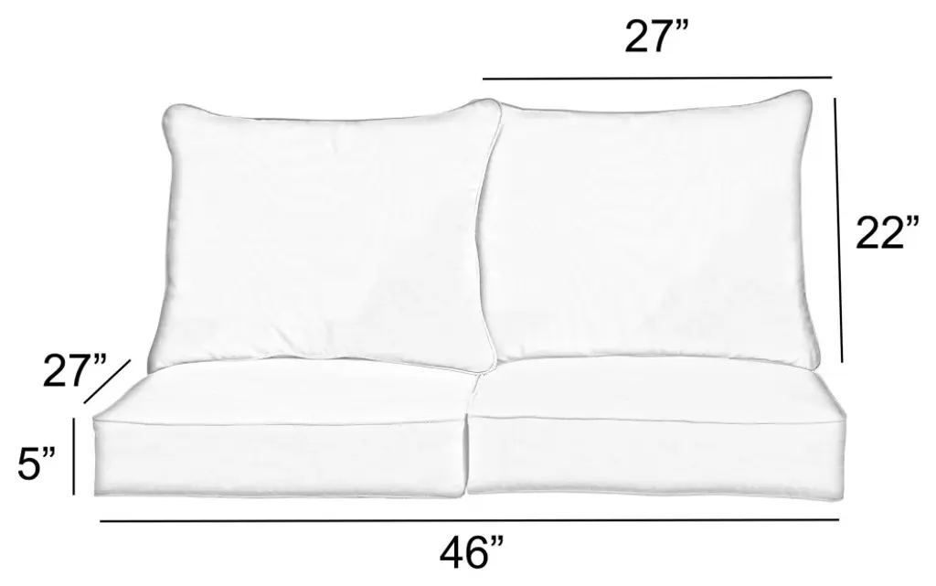 Soak in the sunshine on your porch or patio with the help of this cozy loveseat pillow and cushion set! Featuring a timeless solid fabric in a rich, Gray hue, this pillow set is sure to add style to your space and make you enjoy the outdoors so much more! Crafted out of a performance material right here in North America, these pillows are built to withstand sun, stains and weather so that you can enjoy them worry-free! Sunbrella is founded on the belief that fabrics should be both beautiful and functional. We began in the 1960s with the challenge of creating an awning canvas with a substantially longer lifespan than cotton. Sunbrella has become widely adopted for shade structures, marine canvas and upholstery fabric for both outdoor and indoor applications.Our textiles are made with close attention to design detail, and engineered with robust performance characteristics that provide resistance to fading and degradation from sunlight and chemical exposure. The fabric is tactile yet durable, has industry-leading environmental characteristics, is easy to care for and offers long life - wherever it''s used.No Sunbrella manufacturing facility in the world sends waste to landfills. A result of our focus on efficiency, this monumental achievement allows Sunbrella to lead by example, putting sustainability into practice every day across the globe. Our unique coloring process not only makes Sunbrella fabrics fade-resistant, it also conserves more water than conventional dyeing processes. At Sunbrella we believe it''s important to preserve the environment around our facilities. We work to conserve the plant and animal life that is native to the area and encourage our employees to plant gardens designed to provide fresh food and nourish local wildlife.We stand behind our fabrics with a guarantee that''s the best in the industry: a 5-year limited warranty for upholstery. This warranty protects the original purchaser of Sunbrella fabric. This warranty protects against Sunbrella fabric becoming unserviceable due to color or strength loss from normal usage and exposure conditions, including sunlight, mildew and atmospheric chemicals.• Ideal for casual indoor and outdoor use• Includes two (2) back pillows and two (2) seat cushions• Cushion cover can be removed for easy cleaning. Pillow cover is not removable.• Available in a variety of sizes and colors to ensure that you find the perfect match for your furniture• Pillows and cushions only. Furniture not included.• • Made in North America•