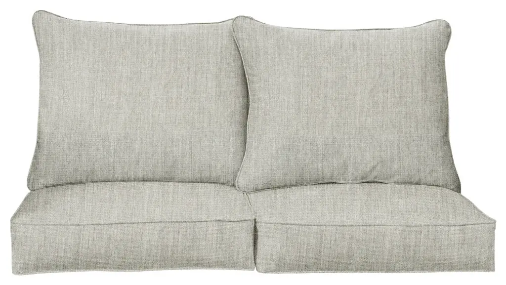 Soak in the sunshine on your porch or patio with the help of this cozy loveseat pillow and cushion set! Featuring a timeless solid fabric in a rich, Gray hue, this pillow set is sure to add style to your space and make you enjoy the outdoors so much more! Crafted out of a performance material right here in North America, these pillows are built to withstand sun, stains and weather so that you can enjoy them worry-free! Sunbrella is founded on the belief that fabrics should be both beautiful and functional. We began in the 1960s with the challenge of creating an awning canvas with a substantially longer lifespan than cotton. Sunbrella has become widely adopted for shade structures, marine canvas and upholstery fabric for both outdoor and indoor applications.Our textiles are made with close attention to design detail, and engineered with robust performance characteristics that provide resistance to fading and degradation from sunlight and chemical exposure. The fabric is tactile yet durable, has industry-leading environmental characteristics, is easy to care for and offers long life - wherever it''s used.No Sunbrella manufacturing facility in the world sends waste to landfills. A result of our focus on efficiency, this monumental achievement allows Sunbrella to lead by example, putting sustainability into practice every day across the globe. Our unique coloring process not only makes Sunbrella fabrics fade-resistant, it also conserves more water than conventional dyeing processes. At Sunbrella we believe it''s important to preserve the environment around our facilities. We work to conserve the plant and animal life that is native to the area and encourage our employees to plant gardens designed to provide fresh food and nourish local wildlife.We stand behind our fabrics with a guarantee that''s the best in the industry: a 5-year limited warranty for upholstery. This warranty protects the original purchaser of Sunbrella fabric. This warranty protects against Sunbrella fabric becoming unserviceable due to color or strength loss from normal usage and exposure conditions, including sunlight, mildew and atmospheric chemicals.• Ideal for casual indoor and outdoor use• Includes two (2) back pillows and two (2) seat cushions• Cushion cover can be removed for easy cleaning. Pillow cover is not removable.• Available in a variety of sizes and colors to ensure that you find the perfect match for your furniture• Pillows and cushions only. Furniture not included.• • Made in North America•