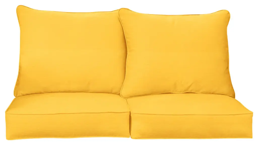 Soak in the sunshine on your porch or patio with the help of this cozy loveseat pillow and cushion set! Featuring a timeless solid fabric in a rich, green hue, this pillow set is sure to add style to your space and make you enjoy the outdoors so much more! Crafted out of a performance material right here in North America, these pillows are built to withstand sun, stains and weather so that you can enjoy them worry-free! Sunbrella is founded on the belief that fabrics should be both beautiful and functional. We began in the 1960s with the challenge of creating an awning canvas with a substantially longer lifespan than cotton. Sunbrella has become widely adopted for shade structures, marine canvas and upholstery fabric for both outdoor and indoor applications.Our textiles are made with close attention to design detail, and engineered with robust performance characteristics that provide resistance to fading and degradation from sunlight and chemical exposure. The fabric is tactile yet durable, has industry-leading environmental characteristics, is easy to care for and offers long life - wherever it''s used.No Sunbrella manufacturing facility in the world sends waste to landfills. A result of our focus on efficiency, this monumental achievement allows Sunbrella to lead by example, putting sustainability into practice every day across the globe. Our unique coloring process not only makes Sunbrella fabrics fade-resistant, it also conserves more water than conventional dyeing processes. At Sunbrella we believe it''s important to preserve the environment around our facilities. We work to conserve the plant and animal life that is native to the area and encourage our employees to plant gardens designed to provide fresh food and nourish local wildlife.We stand behind our fabrics with a guarantee that''s the best in the industry: a 5-year limited warranty for upholstery. This warranty protects the original purchaser of Sunbrella fabric. This warranty protects against Sunbrella fabric becoming unserviceable due to color or strength loss from normal usage and exposure conditions, including sunlight, mildew and atmospheric chemicals.• Ideal for casual indoor and outdoor use• Includes two (2) back pillows and two (2) seat cushions• Cushion cover can be removed for easy cleaning. Pillow cover is not removable.• Available in a variety of sizes and colors to ensure that you find the perfect match for your furniture• Pillows and cushions only. Furniture not included.• • Made in North America•