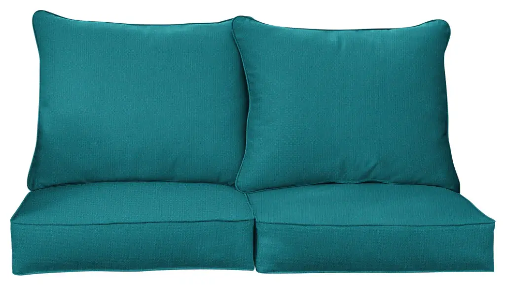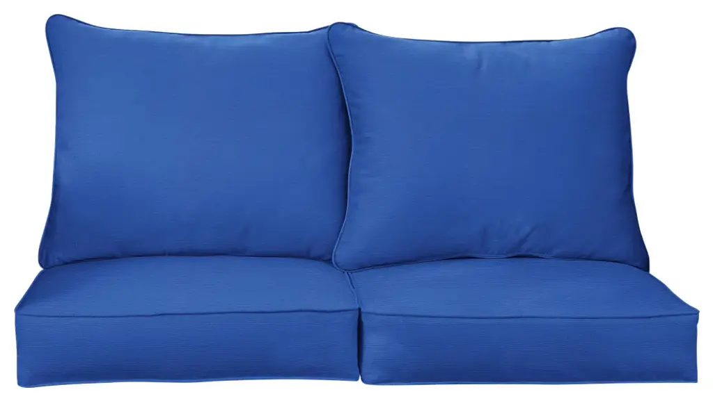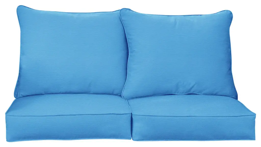 Soak in the sunshine on your porch or patio with the help of this cozy loveseat pillow and cushion set! Featuring a timeless solid fabric in a rich, blue hue, this pillow set is sure to add style to your space and make you enjoy the outdoors so much more! Crafted out of a performance material right here in North America, these pillows are built to withstand sun, stains and weather so that you can enjoy them worry-free! Sunbrella is founded on the belief that fabrics should be both beautiful and functional. We began in the 1960s with the challenge of creating an awning canvas with a substantially longer lifespan than cotton. Sunbrella has become widely adopted for shade structures, marine canvas and upholstery fabric for both outdoor and indoor applications.Our textiles are made with close attention to design detail, and engineered with robust performance characteristics that provide resistance to fading and degradation from sunlight and chemical exposure. The fabric is tactile yet durable, has industry-leading environmental characteristics, is easy to care for and offers long life - wherever it''s used.No Sunbrella manufacturing facility in the world sends waste to landfills. A result of our focus on efficiency, this monumental achievement allows Sunbrella to lead by example, putting sustainability into practice every day across the globe. Our unique coloring process not only makes Sunbrella fabrics fade-resistant, it also conserves more water than conventional dyeing processes. At Sunbrella we believe it''s important to preserve the environment around our facilities. We work to conserve the plant and animal life that is native to the area and encourage our employees to plant gardens designed to provide fresh food and nourish local wildlife.We stand behind our fabrics with a guarantee that''s the best in the industry: a 5-year limited warranty for upholstery. This warranty protects the original purchaser of Sunbrella fabric. This warranty protects against Sunbrella fabric becoming unserviceable due to color or strength loss from normal usage and exposure conditions, including sunlight, mildew and atmospheric chemicals.• Ideal for casual indoor and outdoor use• Includes two (2) back pillows and two (2) seat cushions• Cushion cover can be removed for easy cleaning. Pillow cover is not removable.• Available in a variety of sizes and colors to ensure that you find the perfect match for your furniture• Pillows and cushions only. Furniture not included.• • Made in North America•
