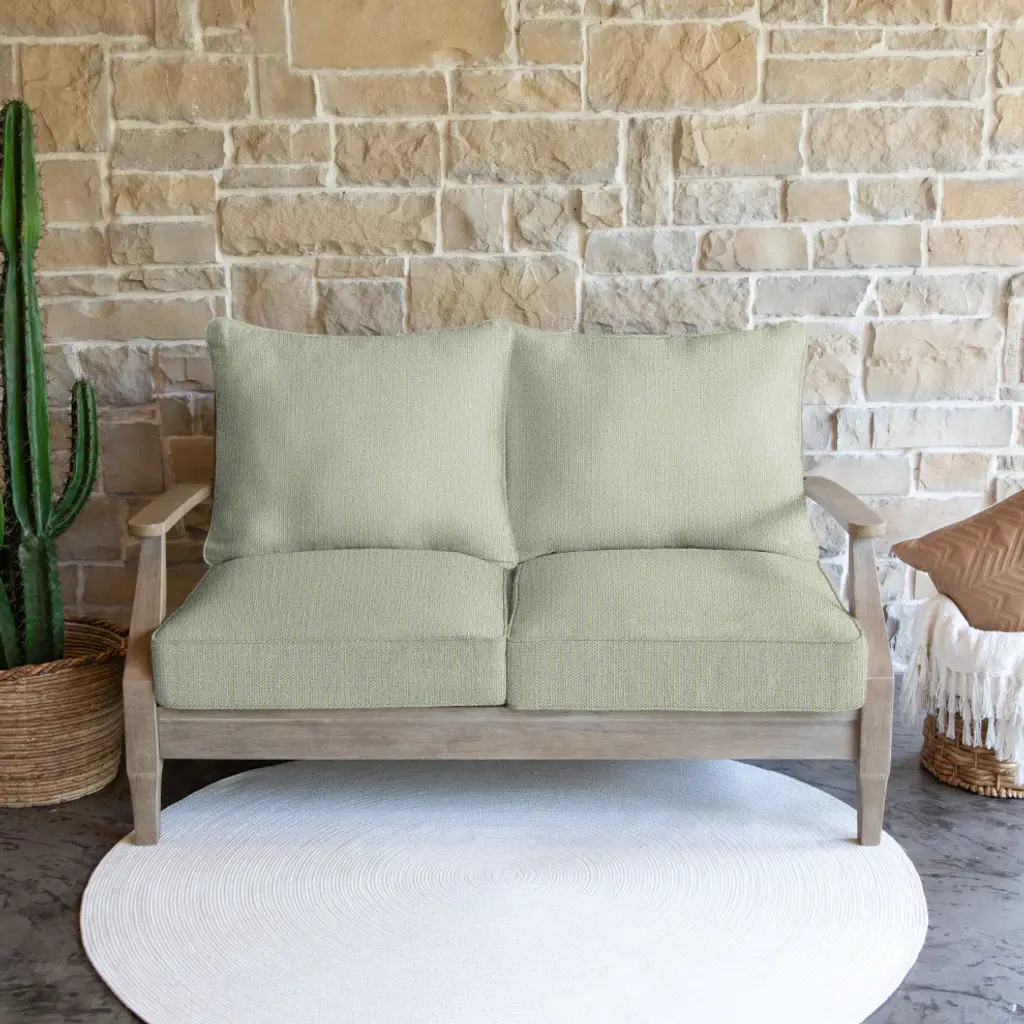 Sunbrella Outdoor Loveseat Pillow And Cushion Set, Green, 23.5"wx23"dx5"h