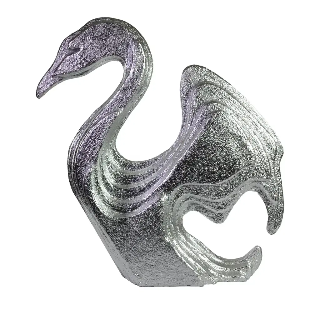 The Swan Sculpture celebrates the beauty of one of natures most majestic creatures. Crafted from aluminum in a Nickel finish, the sculpture takes the form of an elegant swan with intricate detailing.
