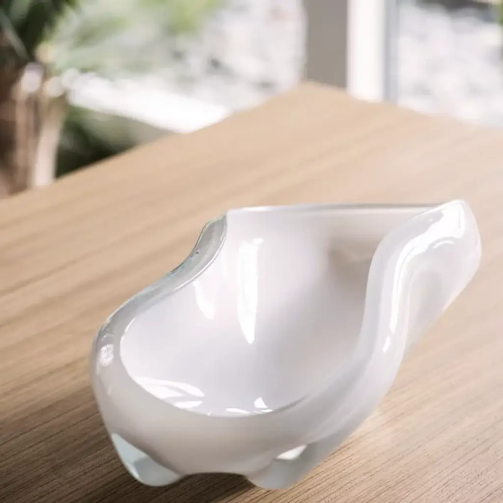 A celebration of glass’s kinetic beauty. The Sway Asymmetrical Long Bowl from SkLO is a standalone or complementary sculpture, treating your table to a one-of-one organic visual. SkLO’s designers bring a refined design approach underscored by a passion for glass-making. Glass masters in the Czech Republic showcase the gorgeous movement of hot glass by lending their breath and a guiding hand. The result is a thick bowl with organic curves that seduce from any viewing angle.