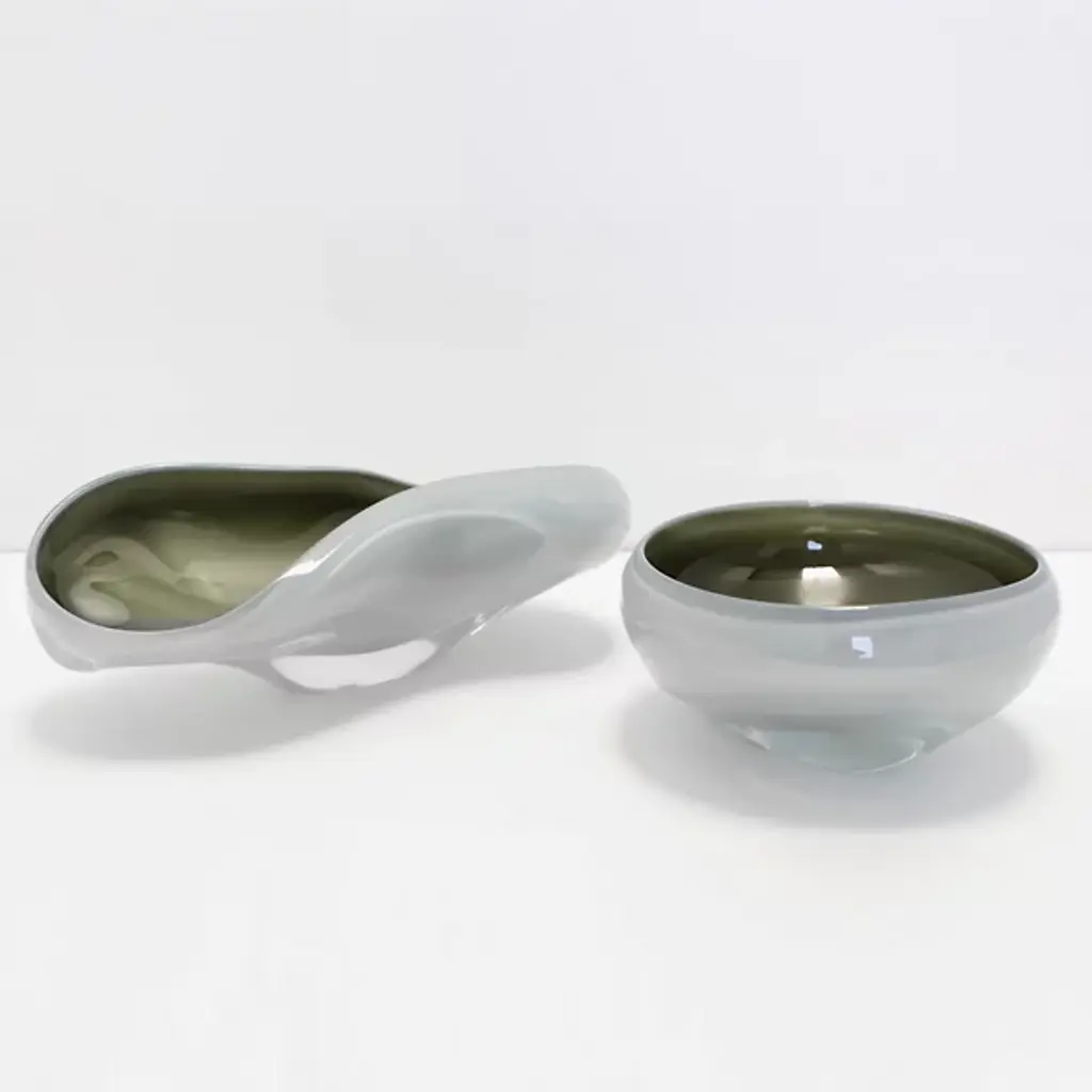 A celebration of glass’s kinetic beauty. The Sway Asymmetrical Long Bowl from SkLO is a standalone or complementary sculpture, treating your table to a one-of-one organic visual. SkLO’s designers bring a refined design approach underscored by a passion for glass-making. Glass masters in the Czech Republic showcase the gorgeous movement of hot glass by lending their breath and a guiding hand. The result is a thick bowl with organic curves that seduce from any viewing angle.