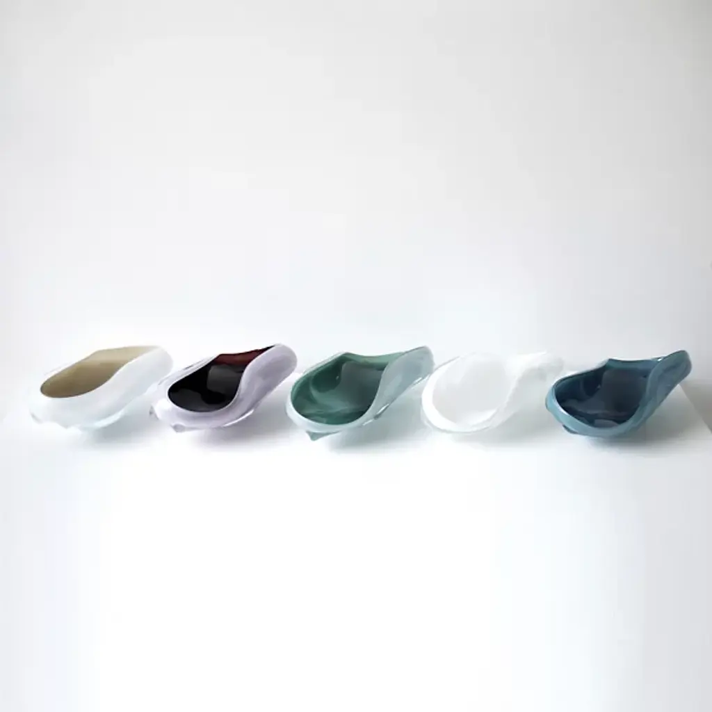 A celebration of glass’s kinetic beauty. The Sway Asymmetrical Long Bowl from SkLO is a standalone or complementary sculpture, treating your table to a one-of-one organic visual. SkLO’s designers bring a refined design approach underscored by a passion for glass-making. Glass masters in the Czech Republic showcase the gorgeous movement of hot glass by lending their breath and a guiding hand. The result is a thick bowl with organic curves that seduce from any viewing angle.