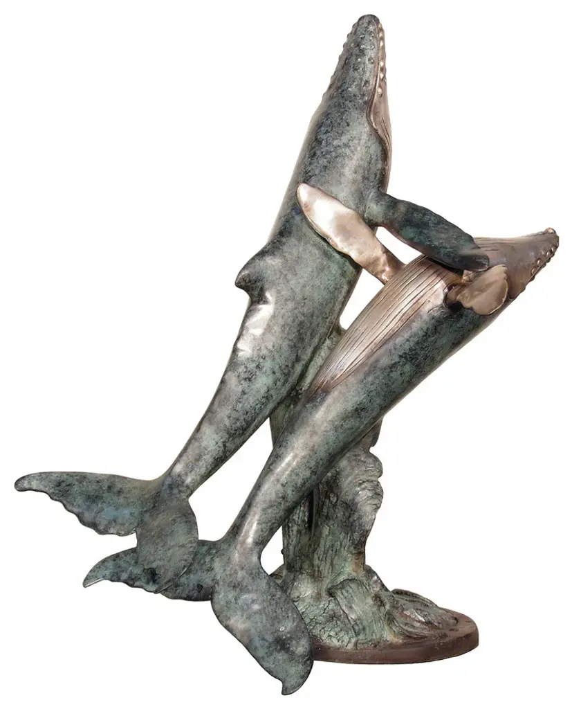 Swimming Whales Bronze Sculpture, Special Patina Finish