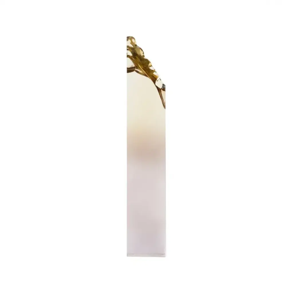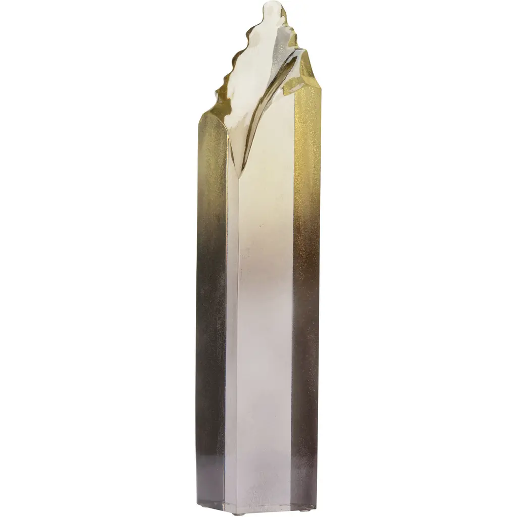 THE SMOKEY GOLD OMBRE FINISH PROVIDES A RUSTIC VIBE TO THIS MODERN ACRYLIC SCULPTURE. DESIGNED FOR BOOKSHELVES AND TABLETOPS, THIS DECORATIVE ACCENT CAN STAND ALONE OR BE GROUPED WITH VARIOUS SIZES FOR A UNIQUE FOCAL POINT.