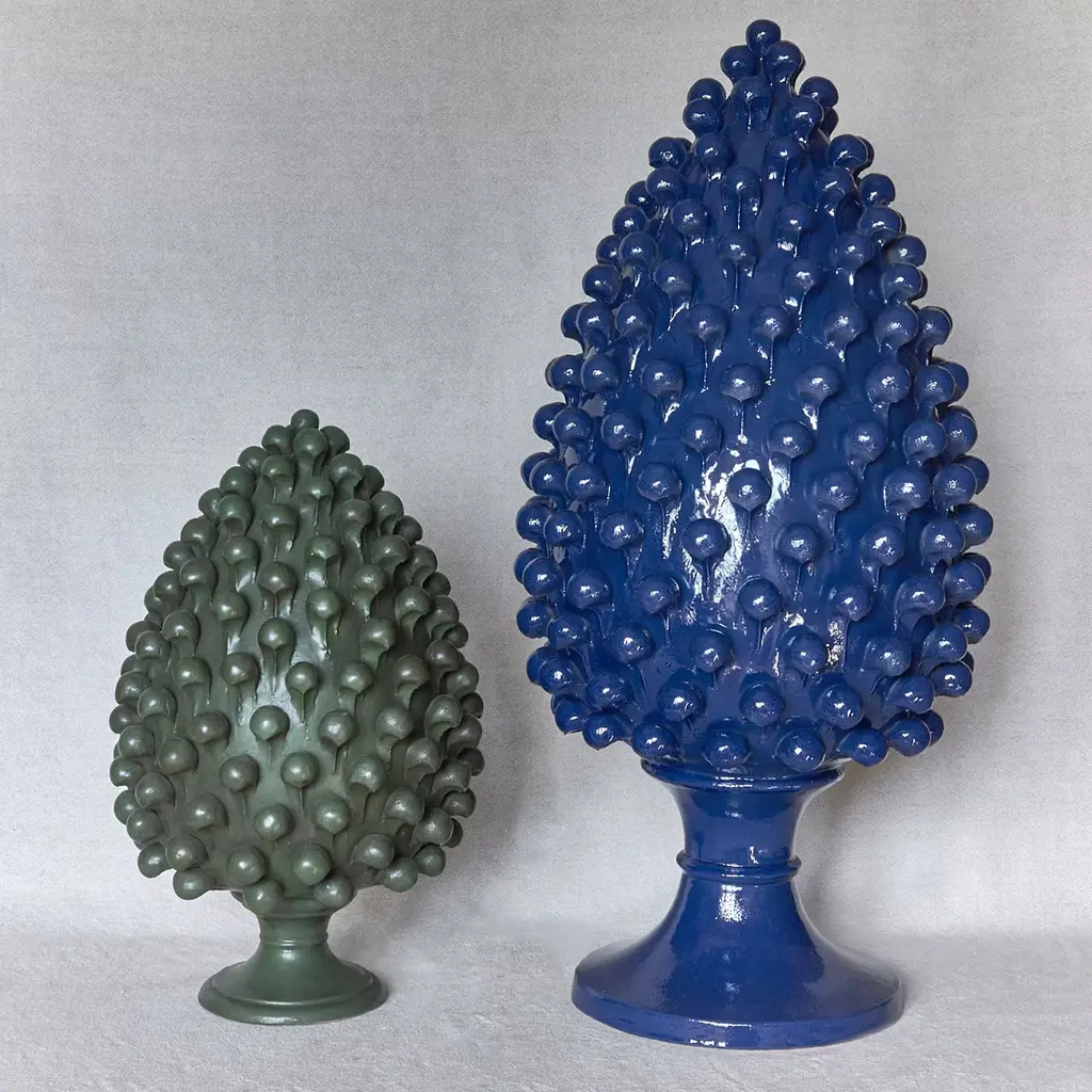 Stately and elegant, this tall pine cone statuette will make an iconic decorative accent piece to display on an entryway console, living room sideboard as well as in an outdoor setting. Crafted by expert hands of ceramic, it is lacquered in a deep blue shade, enhanced with a glossy finish for a stunning visual effect.