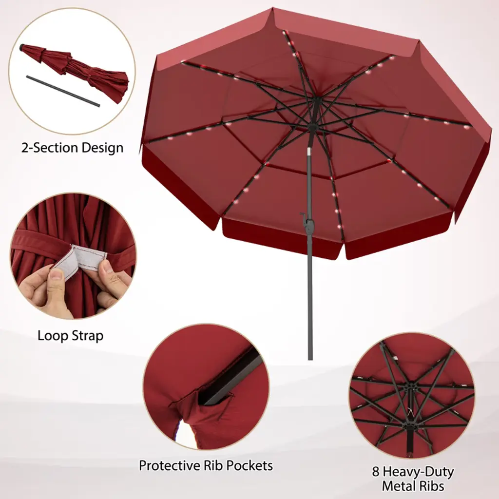 Tangkula 10 Ft Solar Patio Umbrella W/ 32 Led Lights 3-tier Vented Top & Tilt Adjustment Red