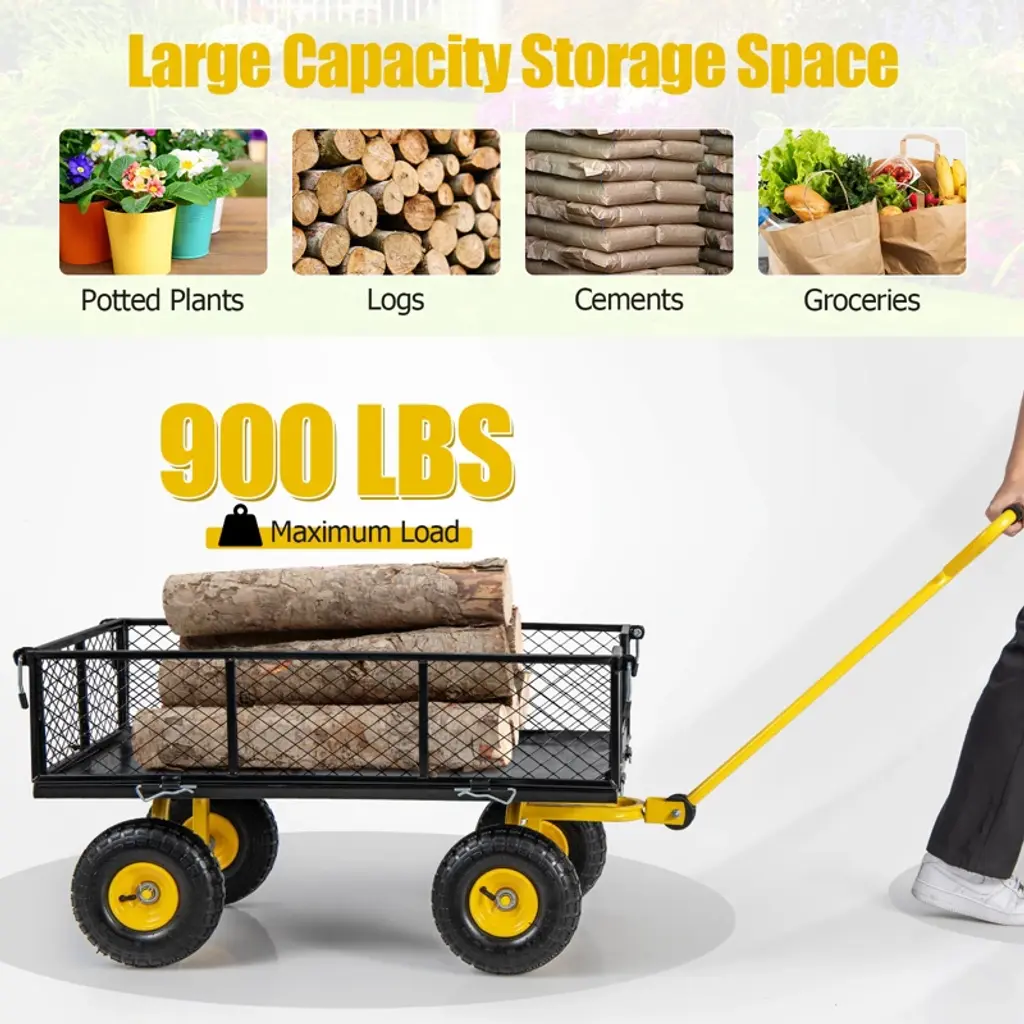 Tangkula Utility Garden Cart 900 Lbs Heavy Duty Wagon Cart With Rotating Handle And Removable Sides