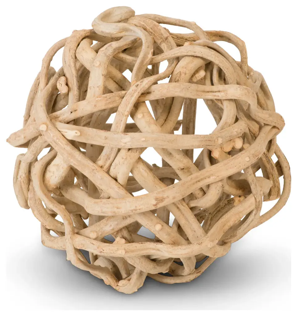 Featuring the distinct shape and texture of snake wood, this decorative ball adds an understated look that complements a variety of decors. Add a single Tangled Snake Wood Sphere to an office desk or living room side table for an eye-catching accent piece. Combine multiple for a dramatic effect. with its distressed white finish and gray undertones, this sphere matches a variety of color schemes.