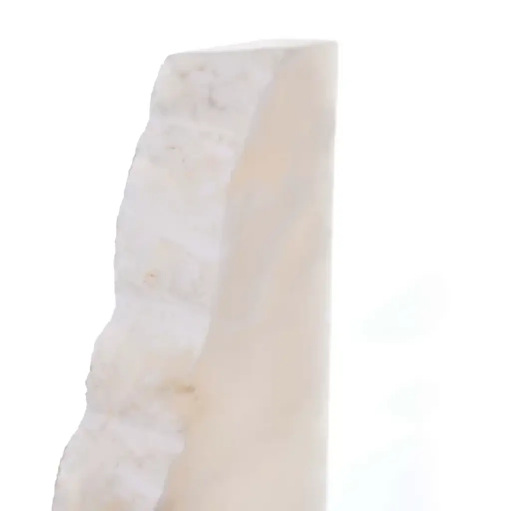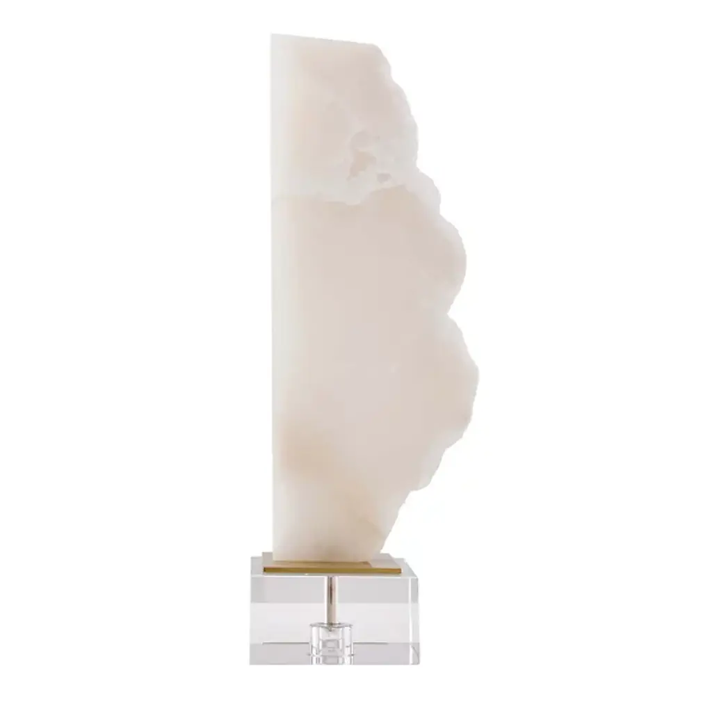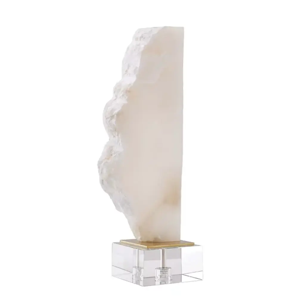 The Taos Sculpture from Arteriors gives your decorative arrangement a natural look. This beautiful sculpture is inspired by Modernism. Alabaster has been meticulously chiseled to give this piece lovely, contoured edges. Your sculpture is properly balanced by a durable plate of steel. Beneath this plate rests a base of fine crystal, which makes the Taos Sculpture truly exceptional. Taos revivifies your living space and will be the topic of conversation among your guests.
