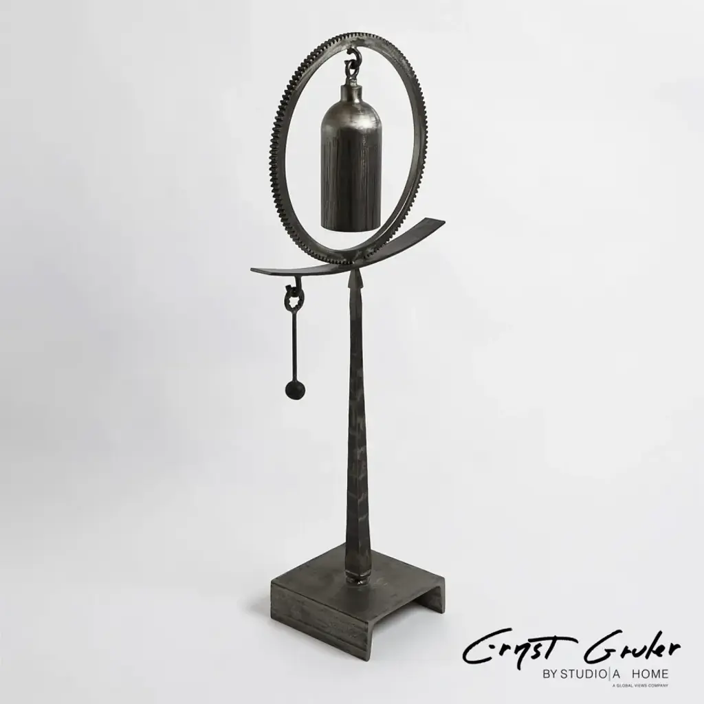 Ernst Grulers original Sound Sculptures were made from repurposed scrap steel and pressure canisters, with a liberal sprinkling of industrial chic, and the technical and aesthetic attention to detail that informs all of Ernsts work. The bells are meant to be rung, and in many cases other parts of the sculptures also resonate when struck. This is why he calls them Sound Sculptures: they invite exploration and interaction, along with the contemplation of the origin and previous functions of the various scrap components of the sculptures. Studio A Home has reproduced Ernst's original Sound Sculptures from iron. They exactly reflect the component parts of his originals. Available in three styles. From a fashion forward perspective, Global Views offers accessories, furniture, statement lighting, and an assortment of rugs and mirrors to add beauty and joy to your home.
