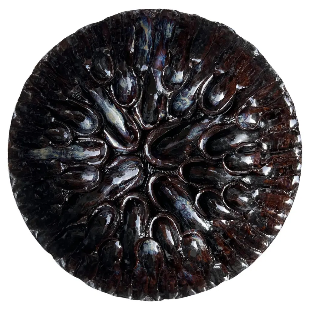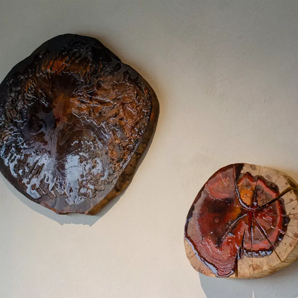 Nature and art come together in a unique sculpture by ROU Materiaal where a section of salvaged elm wood reveals its inner secrets and raw, primitive beauty finding a new life in a modern and contemporary home. Through a combination of techniques that enhance natural veins or imperfections with others that give a more contemporary texture, the surface is treated with clear epoxy resin and painted by hand with acrylic colors to obtain a breathtaking texture reminiscent of rocks eroded by the sun, sands, and water. The raw materials used in the manufacturing process differ every time, consequently, there may be natural variations that are not to be considered product flaws.