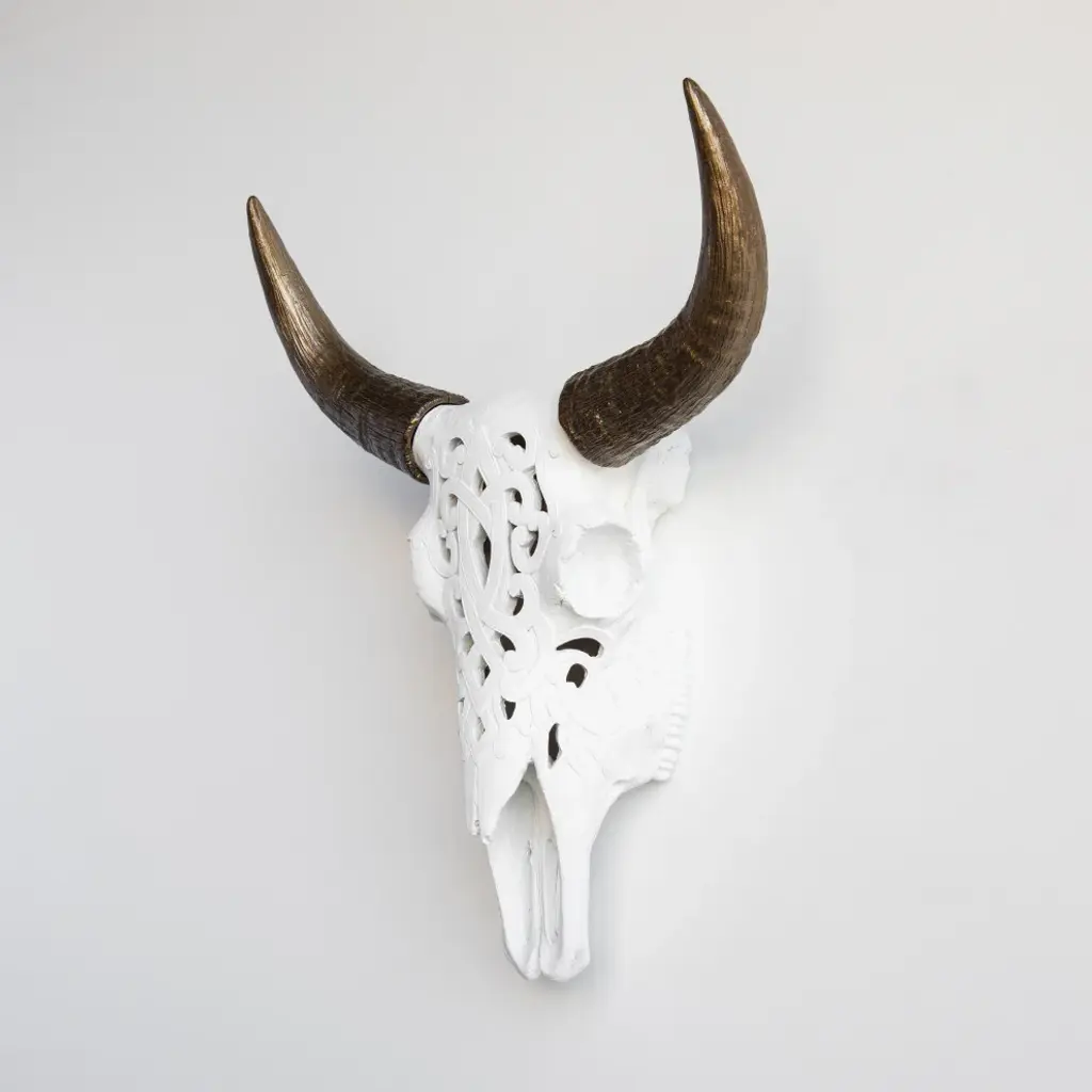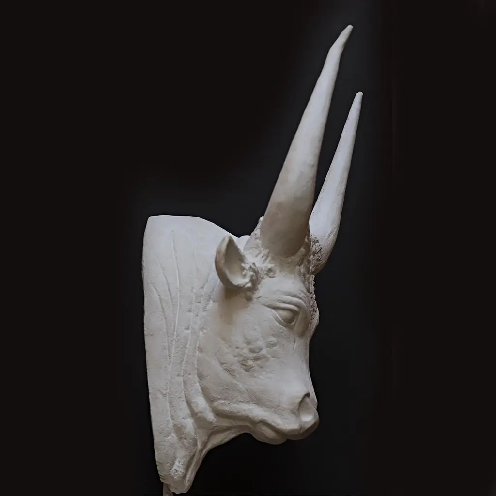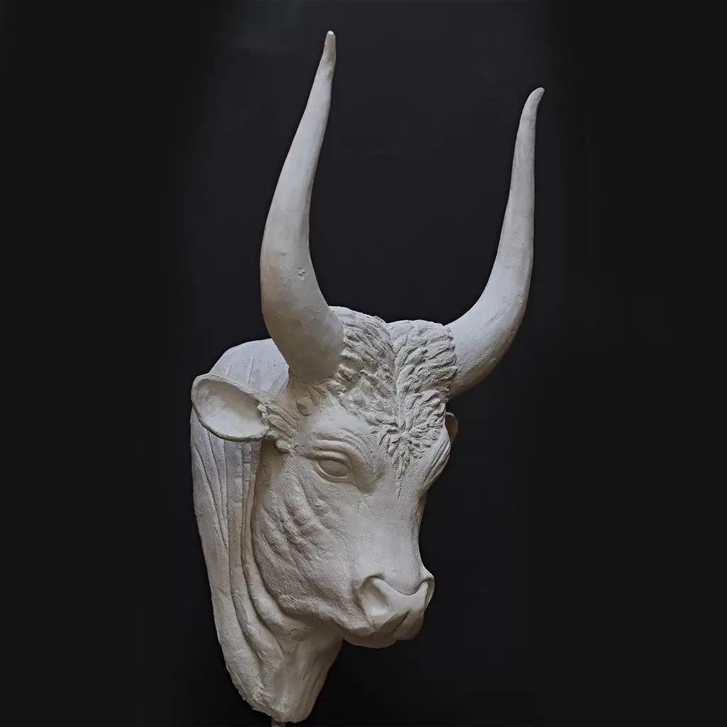 Symbol of strength and vitality, the bull is a renowned symbol in ancient Roman art. Bold and majestic with a captivating gaze, it is deftly handmade of gypsum by the artists of the Romanelli workshop. It can be effortlessly attached to an empty wall of a patio, hallway, or living room.
