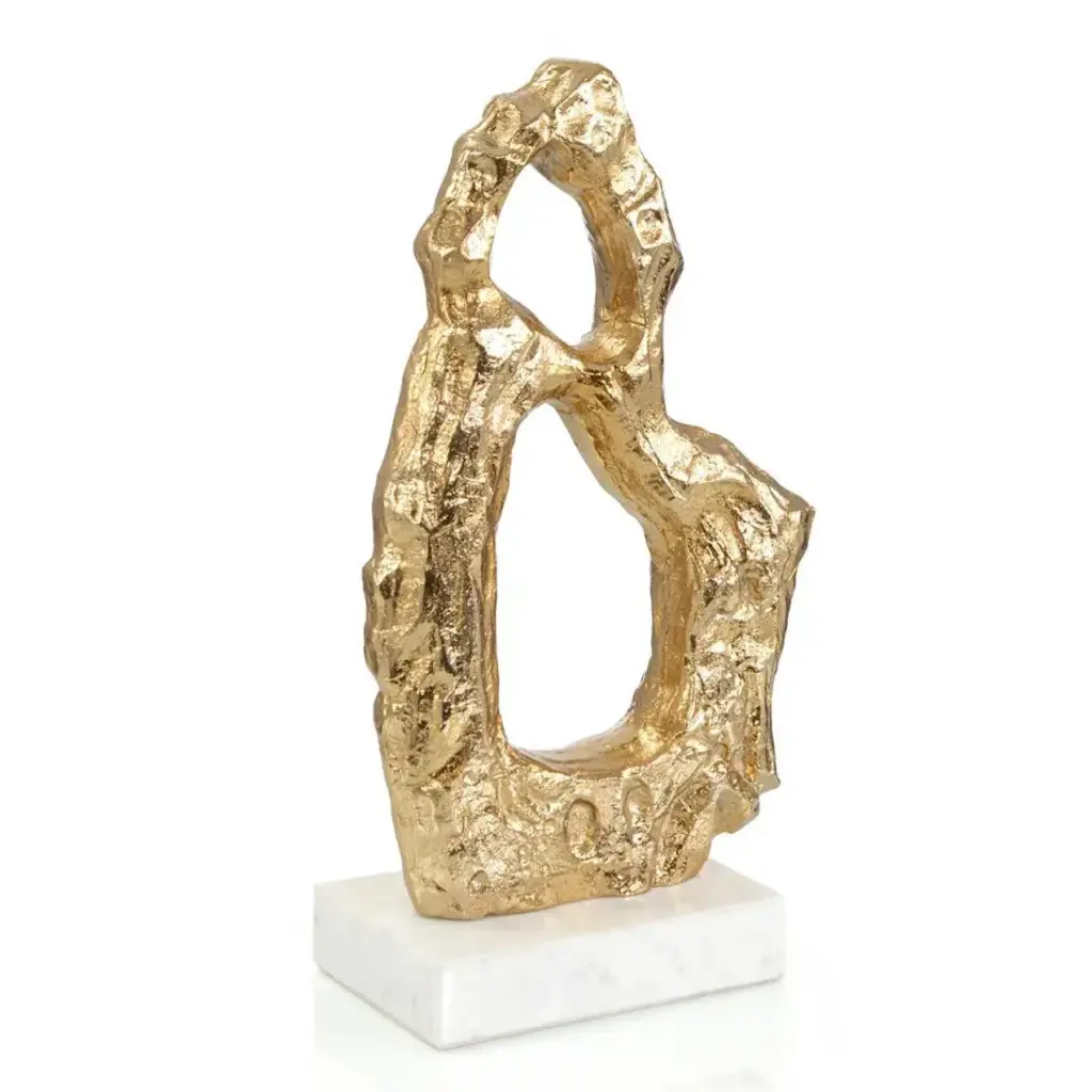 Textural Gold And White Marble Sculpture I 19.75"h X 12"w X 3.75"d
