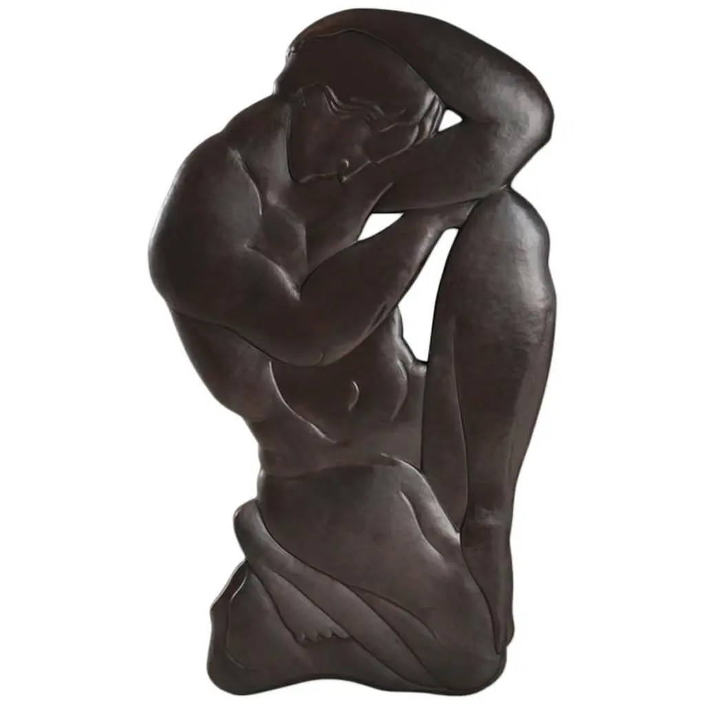This is a pure Bronze Statue replica of The Despair by Auguste Rodin. Based on the couple from "Dante''s Inferno." AUGUSTE RODIN (1840-1917). In between Romanticism and Impressionism this self-willed Frenchman created some of the most famous pieces known in the art of sculpting. He was very talented at conveying feeling in his compositions by emphasizing gesture. Also, his rough surface texture with deep hollows added strong shadows and naturalism to the human form. Rodin''s goal, as he put it, was "to render inner feelings through muscular movement." He achieved this aim by joining his profound knowledge of anatomy and movement with special attention to the body''s surfaces, saying, "The sculptor must learn to reproduce the surface, which means all that vibrates on the surface, soul, love, passion, life...Sculpture is thus the art of hollows and mounds, not of smoothness, or even polished planes." Size: 12"L x 11"W x 19"H. Weight is: 35Lb