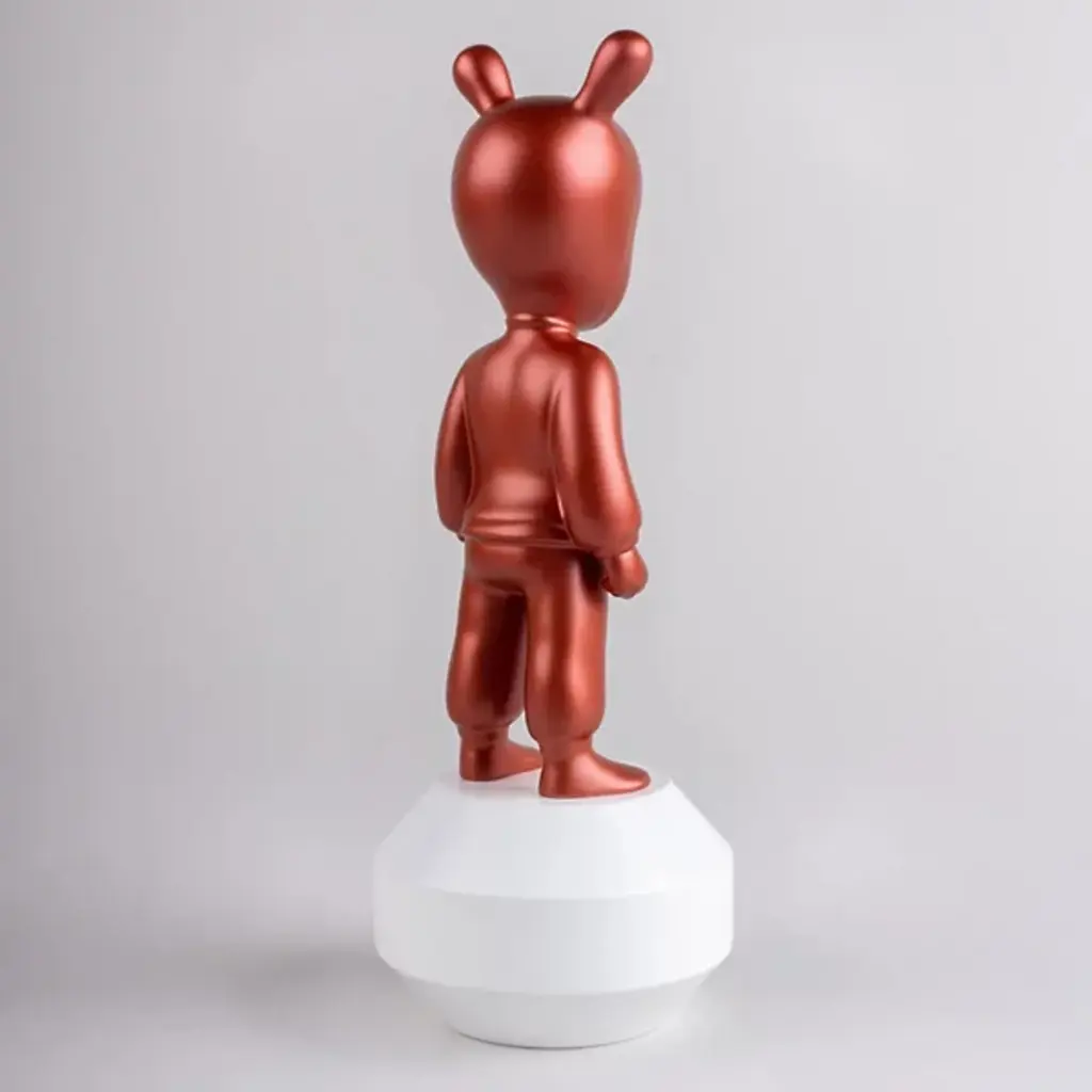 The Guest Metallic Sculpture from Lladro adds visual interest to your living space. It is a contemporary sculpture by designer Jaime Hayon. Made in Spain from exquisite porcelain, this monochromatic piece is crafted with attention to detail. The attached base provides stability and balance, and its white tone offers a bold contrast.