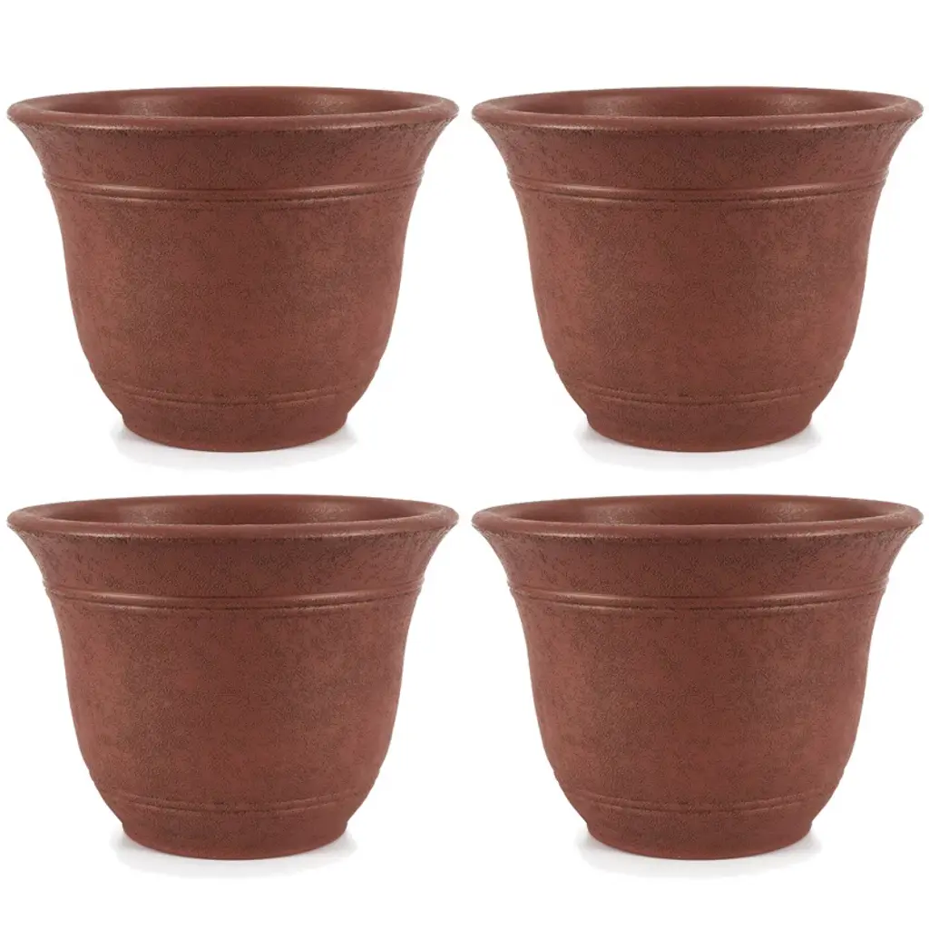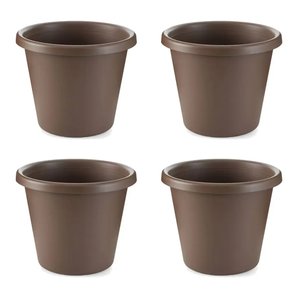 The Hc Companies 14 Inch Classic Durable Plastic Flower Pot Container Garden Planter With Molded Rim And Drainage Holes, Chocolate Brown (2 Pack)