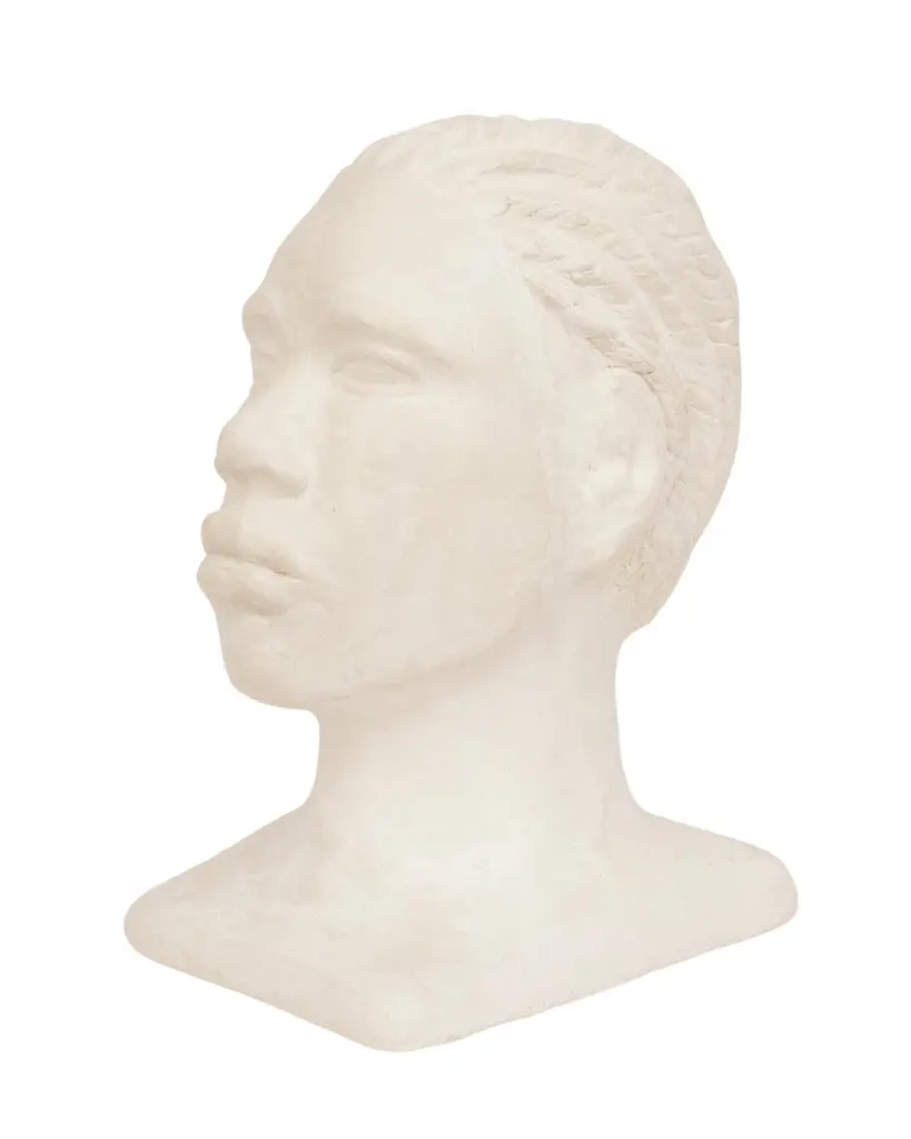 Inspired by the tradition of artists such as Edmonia Lewis, Elizabeth Catlett, and Augusta Savage, The Jamal Bust by Haitian-American artist Jessica Jean-Baptiste is a celebration of the beauty of Black life and Black bodies. Cast in plaster and handmade by the artist in her New York studio, Jamal's expression is revolutionary - a Black man at peace. Each sculpture is handmade and one-of-a-kind. Perfectly sized for display on a table, bookshelf, or desk, this bust is a beautiful statement of culture that will add layers of depth and story to any room in your home.12.5'' H X 8'' W X 9'' D15 lbCast in PlasterHandmade to Order
