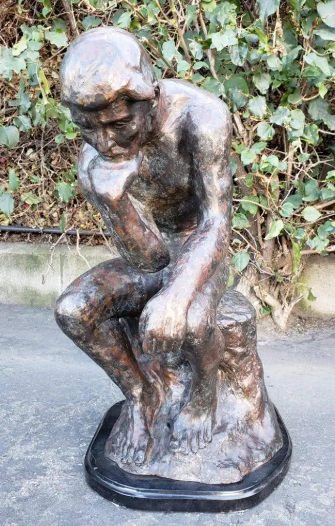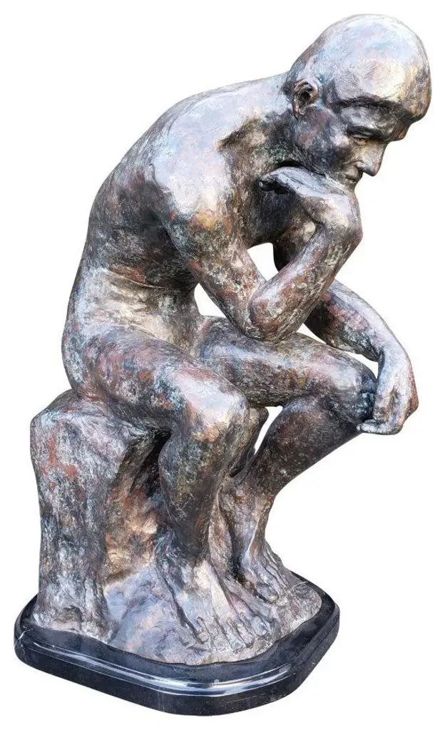The Thinker is considered by many to be Rodin''s most celebrated work. It was conceived as part of his monumental Gates of Hell, inspired by Dante''s Divine Comedy. Originally titled "The Poet," The Thinker represents Dante himself. This reproduction was made from the heroic size bronze original sculpture by Rodin. This impressive Bronze Statue will be a permanent fixture on the grounds of your estate for years to come. Size: 16"L x 12"W x 24"H. Weight is: 98Lb