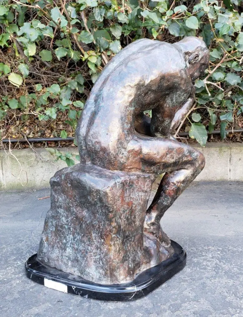 The Thinker Bronze Statue Rodin Replica - Size: 16"l X 12"w X 24"h.