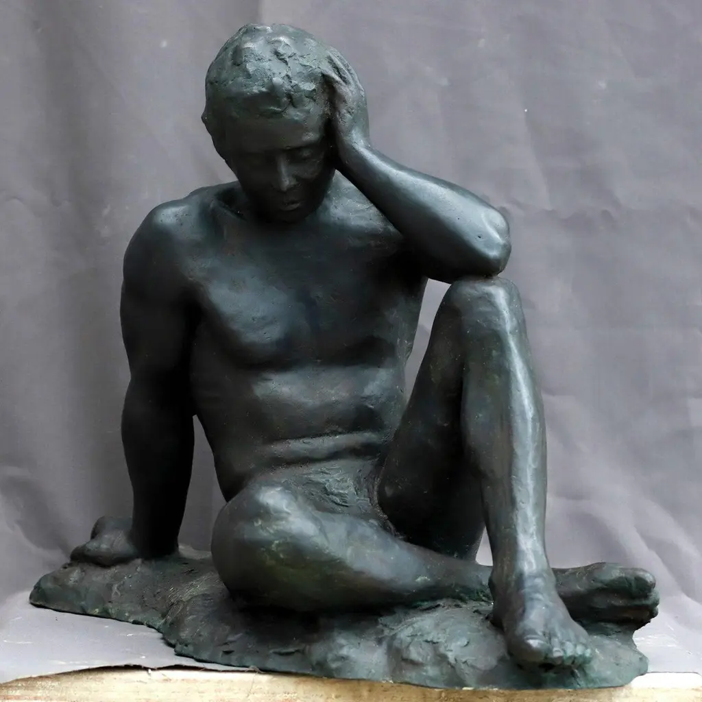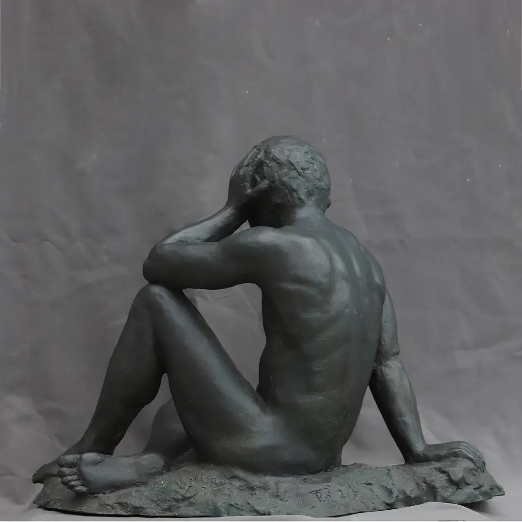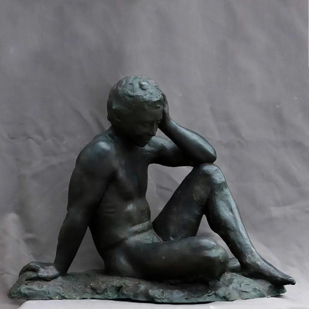 An original work of art by artist Raffaello Romanelli, this stupendous piece draws inspiration from renowned sculpture “The Thinker” by Rodin (“Il Pensatore” in Italian). Capturing a young man ruminating, a timeless symbol of human reflection, this magnificent oeuvre was handcrafted by observing a live model and simultaneously working on a clay sculpture, which is the first step to create bronze artwork of this kind.