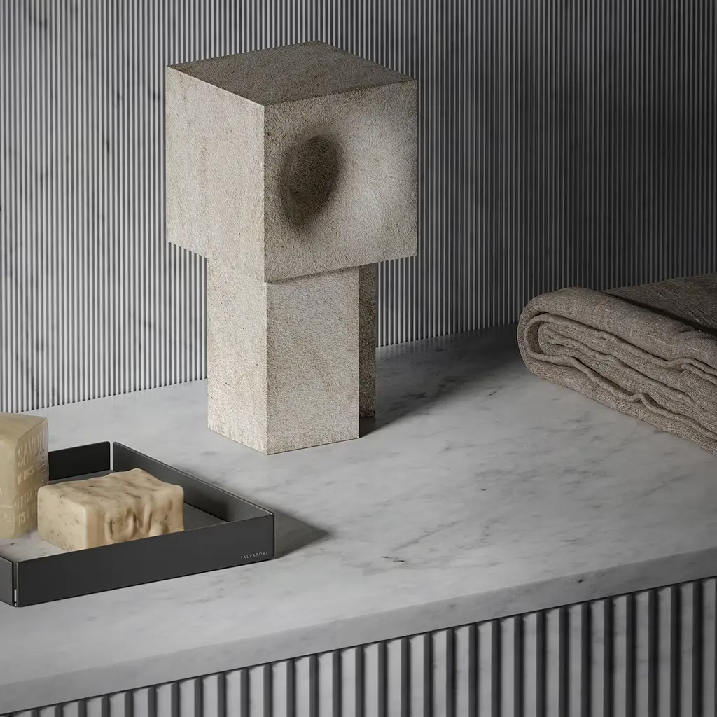 The lockdowns experienced in 2020 stressed the importance of a place to call home. This concept inspired The Village Collection, including this exquisitely contemporary sculpture in Crema D'Orcia stone, shaped like a futuristic house and capable of independence while needing connection with others - just like humans do. A mesmerizing design to accent sideboards, bookcases, or desks in contemporary homes.