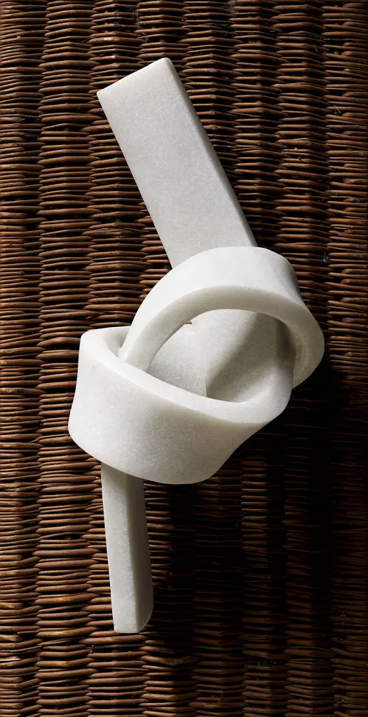 Bring minimalist detail to any modern space with our Thisbe Sculpture. Chic and simple in shape, this object is crafted from quartz sand with a polyresin finish, which has ben formed into a twisting, ribbon-like knotted shape. The perfect finishing touch for any tabletop vignette, we love Thisbe as a sophisticated addition to a mantel, bookshelf or coffee table. •20"W x 9"D x 8"H •quartz sand •polyresin