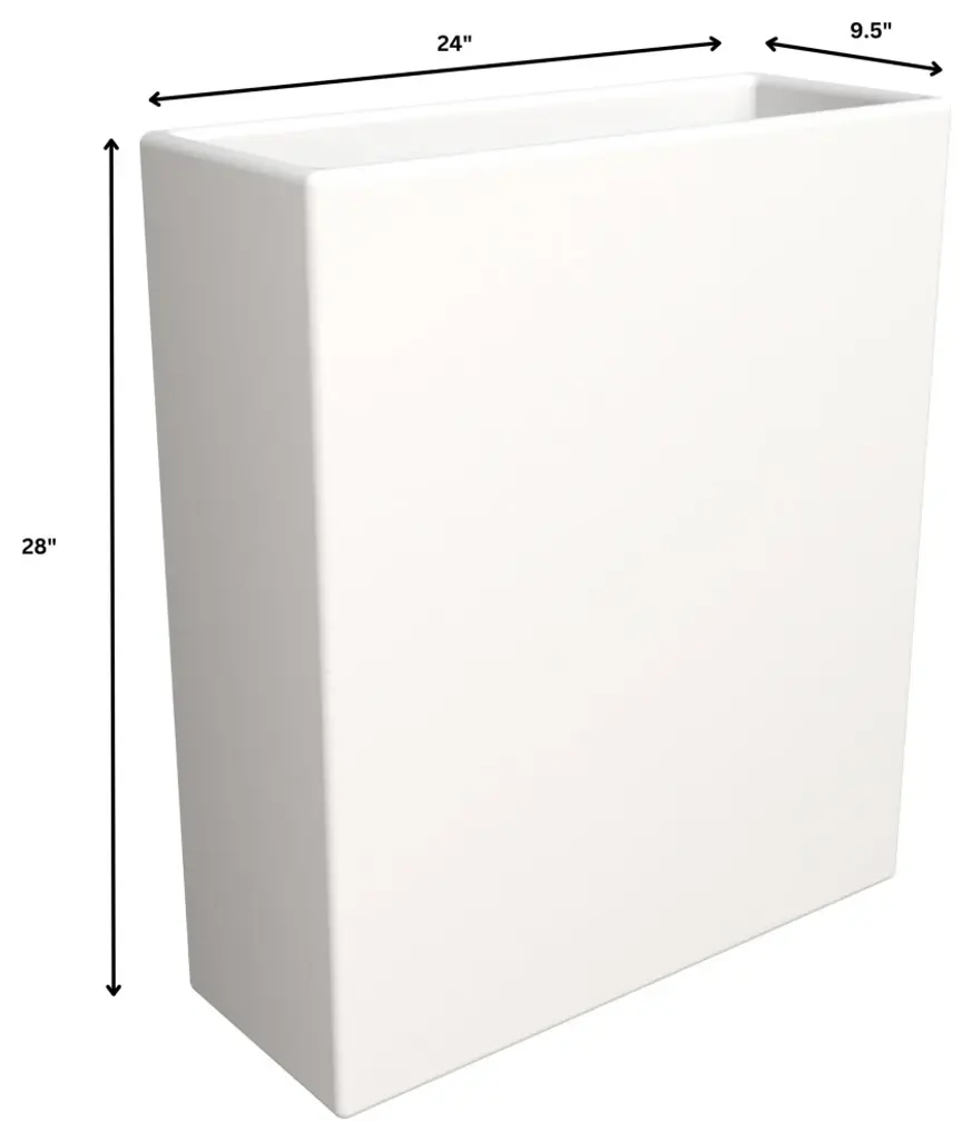 Item Specifications:.Available in two sizes, this planter offers flexibility to accommodate a variety of plants and spaces. Whether you''re seeking a statement piece for your living room or a charming addition to your balcony, there''s a perfect size to suit your needs..Crafted meticulously from a durable blend of fiberstone and MGO clay, the planter boasts exceptional durability and resilience. Its robust construction ensures long-lasting performance, making it a reliable choice for showcasing your favorite plants or flowers..Embrace a contemporary aesthetic with this rectangular planter. Its sleek lines and timeless form draw the eye, making it a captivating focal point in any room. The versatile shape effortlessly complements various design styles..The inclusion of thoughtfully designed drainage and drill holes in our planters promotes proper water drainage and aeration, creating an optimal environment for the health of your plants..Each planter is carefully handcrafted by skilled artisans, resulting in unique variations that add character and charm to every piece. This artisanal touch makes each one a one-of-a-kind addition to your home or garden..Elevate the aesthetics of your space, whether indoors or outdoors, with this versatile rectangular planter. It seamlessly integrates with various design styles, adding a touch of sophistication to any environment..No assembly is required for this planter. Simply unpack, position it in your desired location, and fill it with your favorite plants. Enjoy the beauty and benefits of greenery in your space with minimal effort.Item Dimensions:.28-inch: 28" H x 24" W x 9.5" D.36-inch: 36" H x 31" W x 12" DItem Description:Crafted with precision from a blend of fiberstone and MGO clay, the Thistle Rectangular Planter exudes both elegance and durability. Its weather-resistant design ensures longevity, making it suitable for both indoor and outdoor use. With strategically placed drainage and drill holes, this planter promotes optimal plant health by preventing waterlogging. Available in two sizes, it caters to different planting needs, providing versatility in your gardening endeavors. The thoughtful design eliminates the need for assembly, allowing you to effortlessly incorporate this planter into your decor, bringing a harmonious blend of functionality and style to your surroundings.