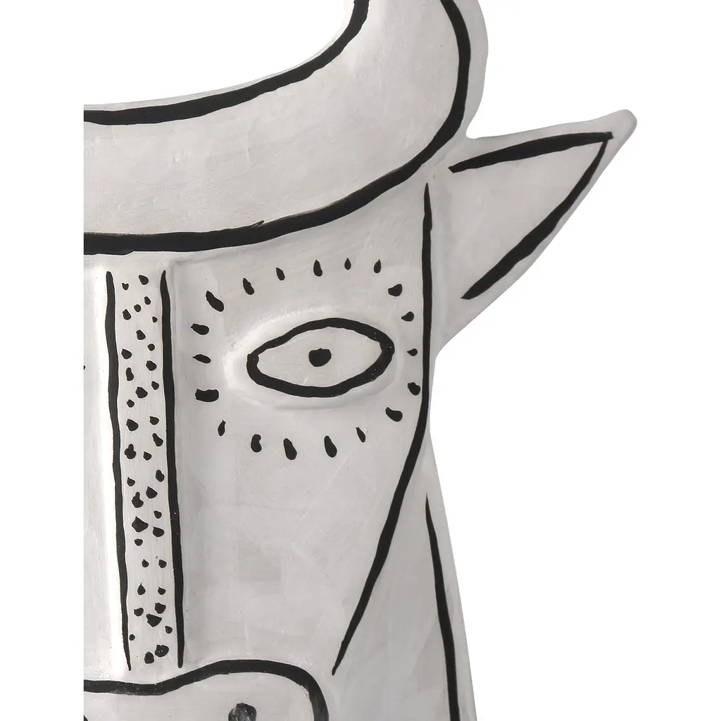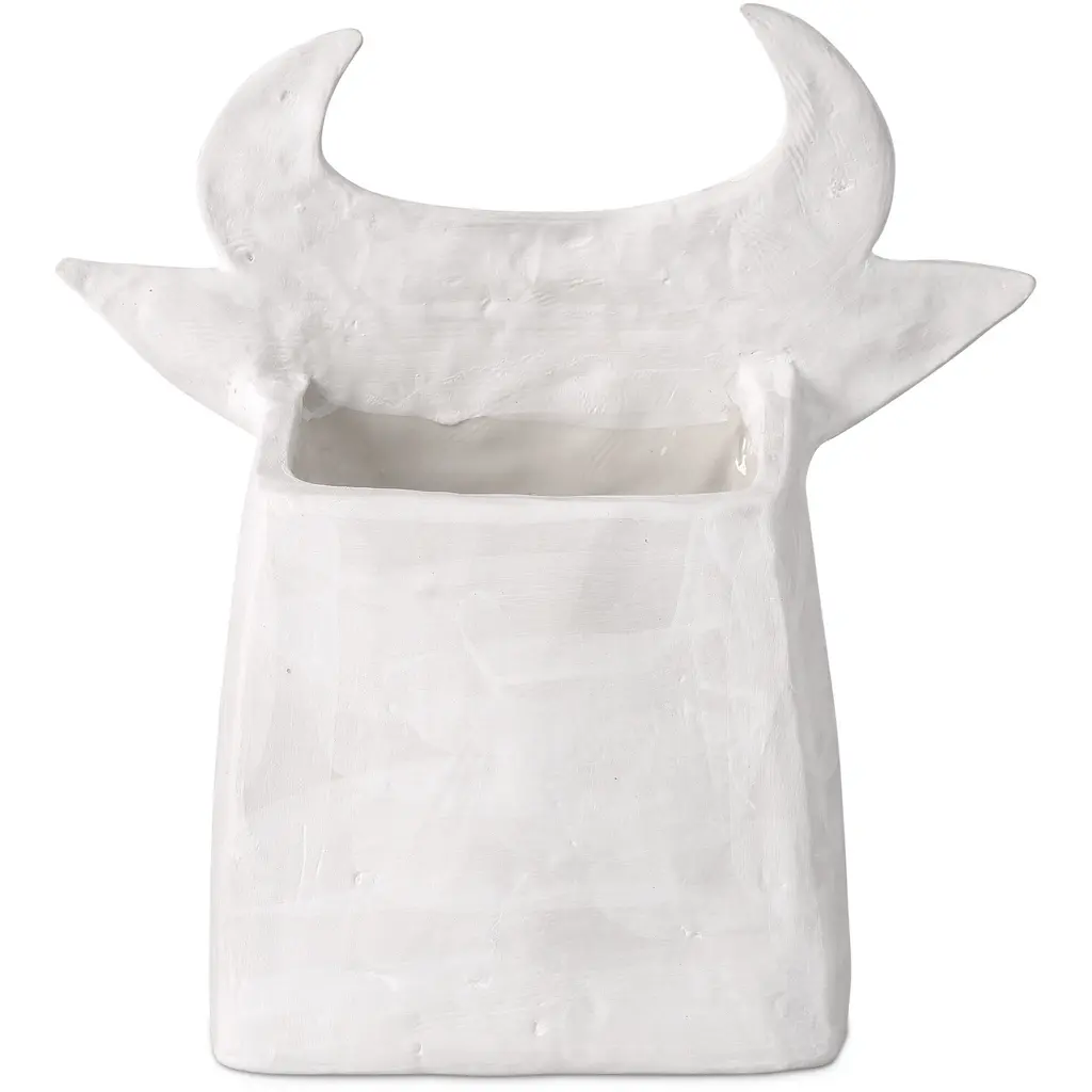 Artist Xiang Yang, a brilliant ceramist, took a walk on the wild side when he created Thomas the Bull. Made of porcelain in a washed-white finish with black whimsical details painted by the artist, the haunting vessel will create a stir not unlike Picasso's work did during his ceramics period as he experimented in the South of France.