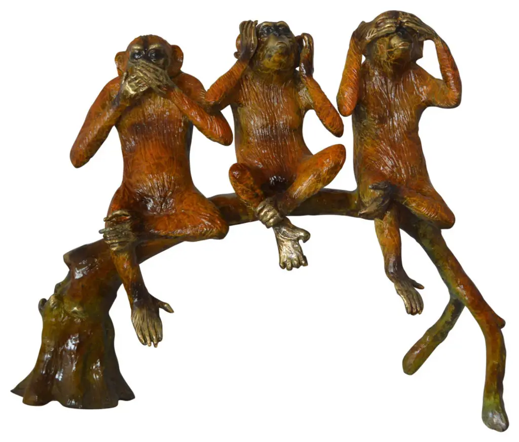 Three Wise Monkeys On A Tree Branch Bronze Statue - Size: 27"l X 11"w X 18"h.