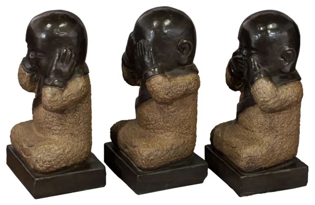 Three Wise Stone Monks Chinese Statue 3Pcs/set