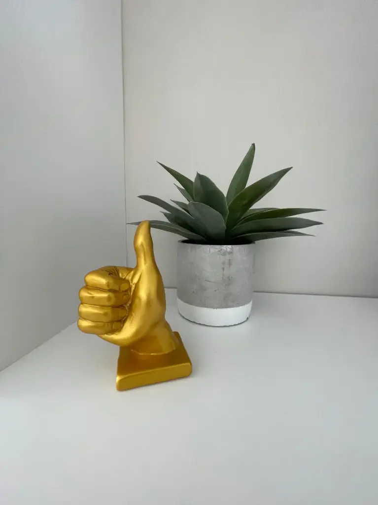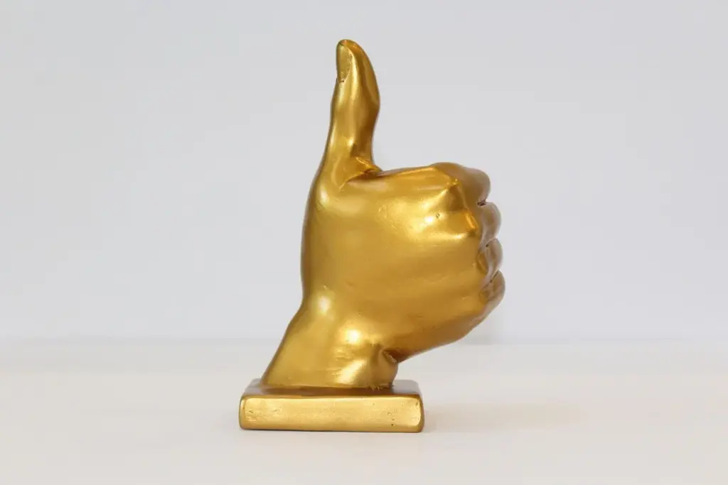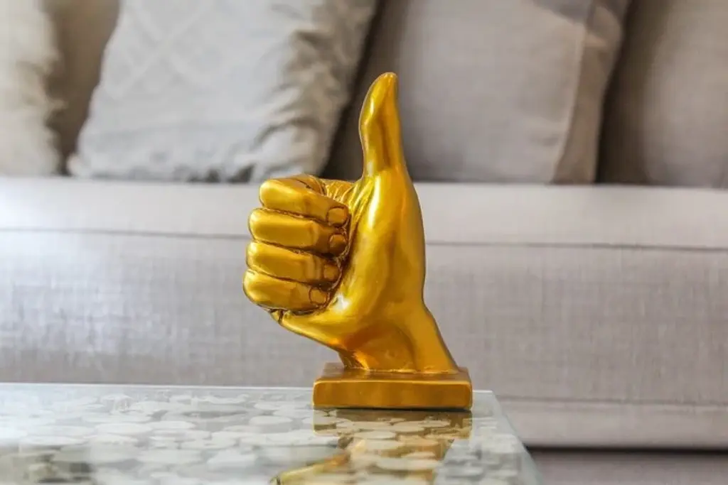 Thumbs Up Hand Symbol Sculpture Choco Black, Gold