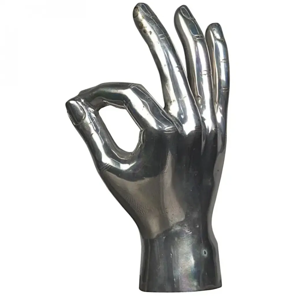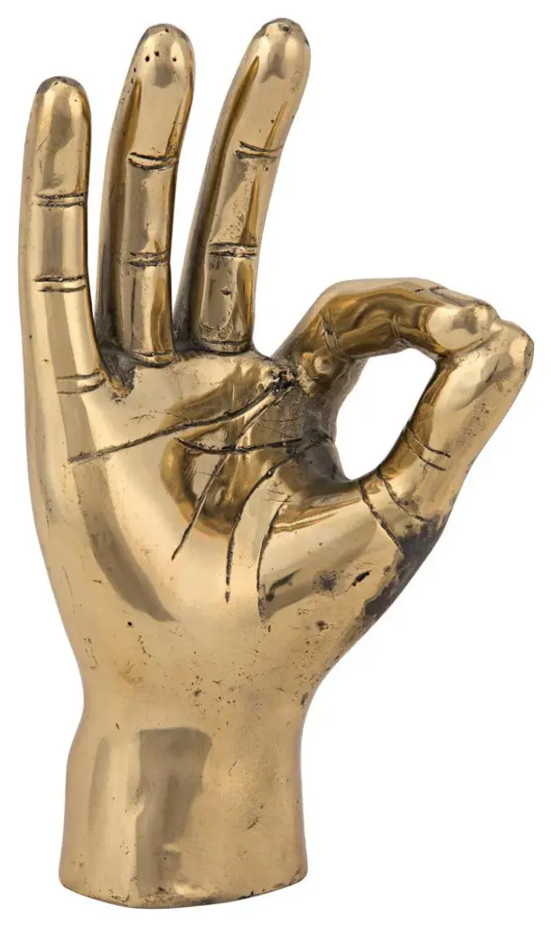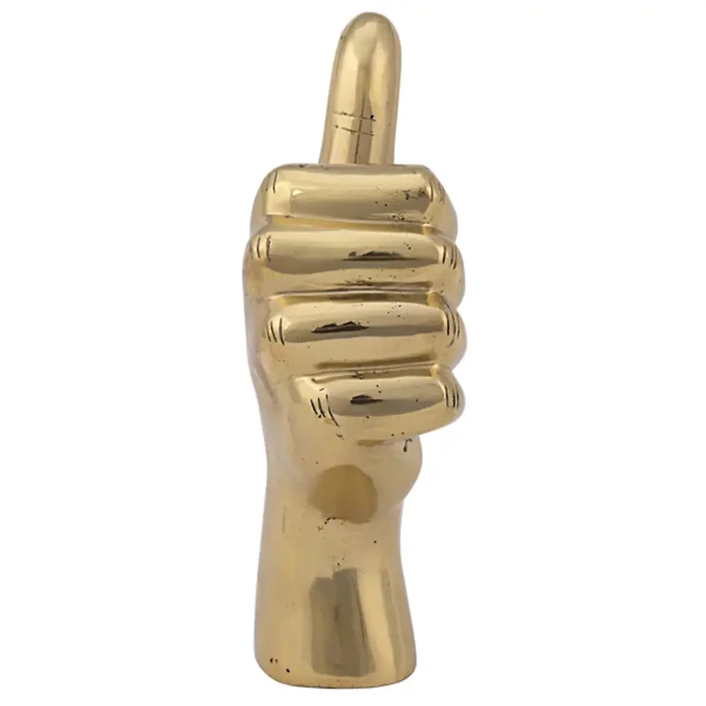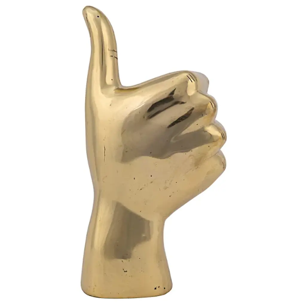 Noir's Thumbs Up Sculpture is a delightful piece that offers a unique and unexpectedly chic way to spread playful positivity and convey that everything is going to be just fine. It's handcrafted in Indonesia with meticulous detail, featuring a textural antique brass finish that exudes a fresh, youthful, and contemporary aesthetic. Crafted from metal alloy, it's a whimsical and artisanal modern addition to your decor that not only brings charm and optimism to its approachable impression.