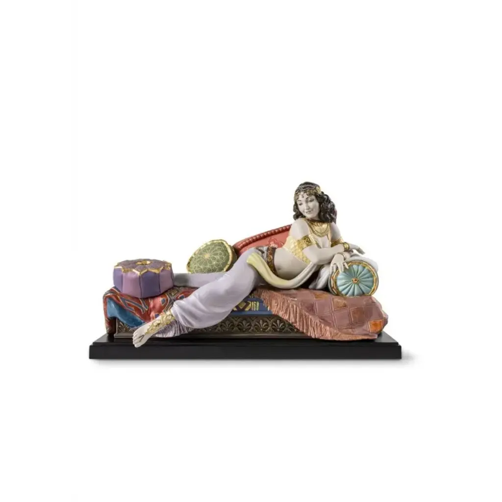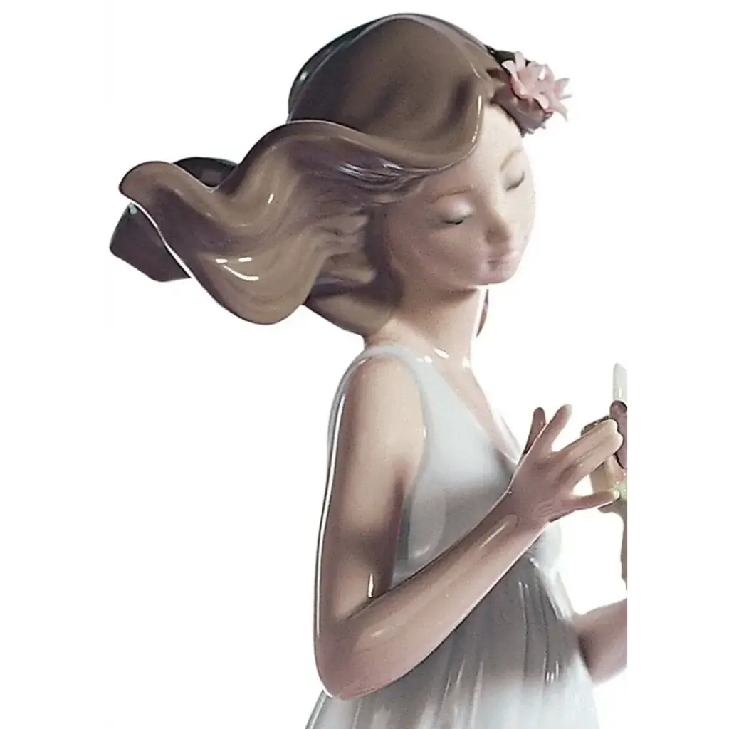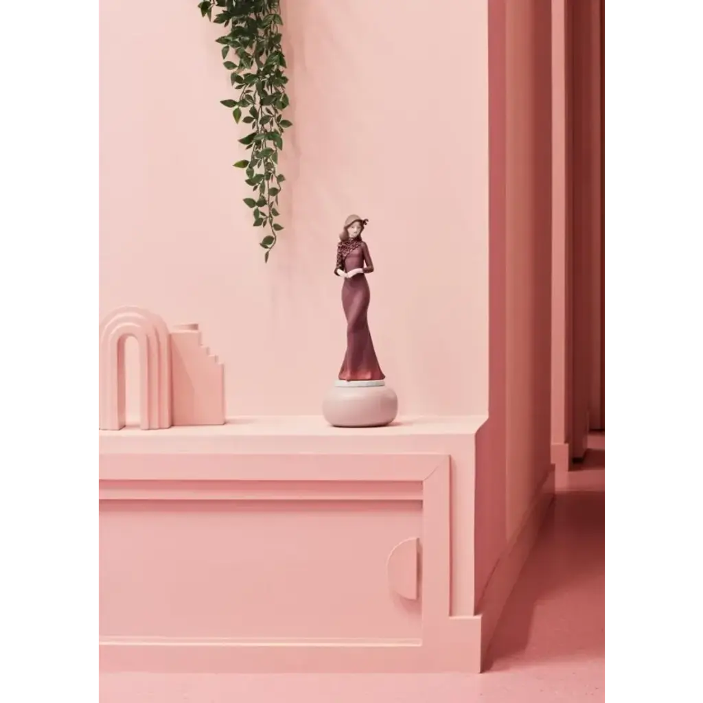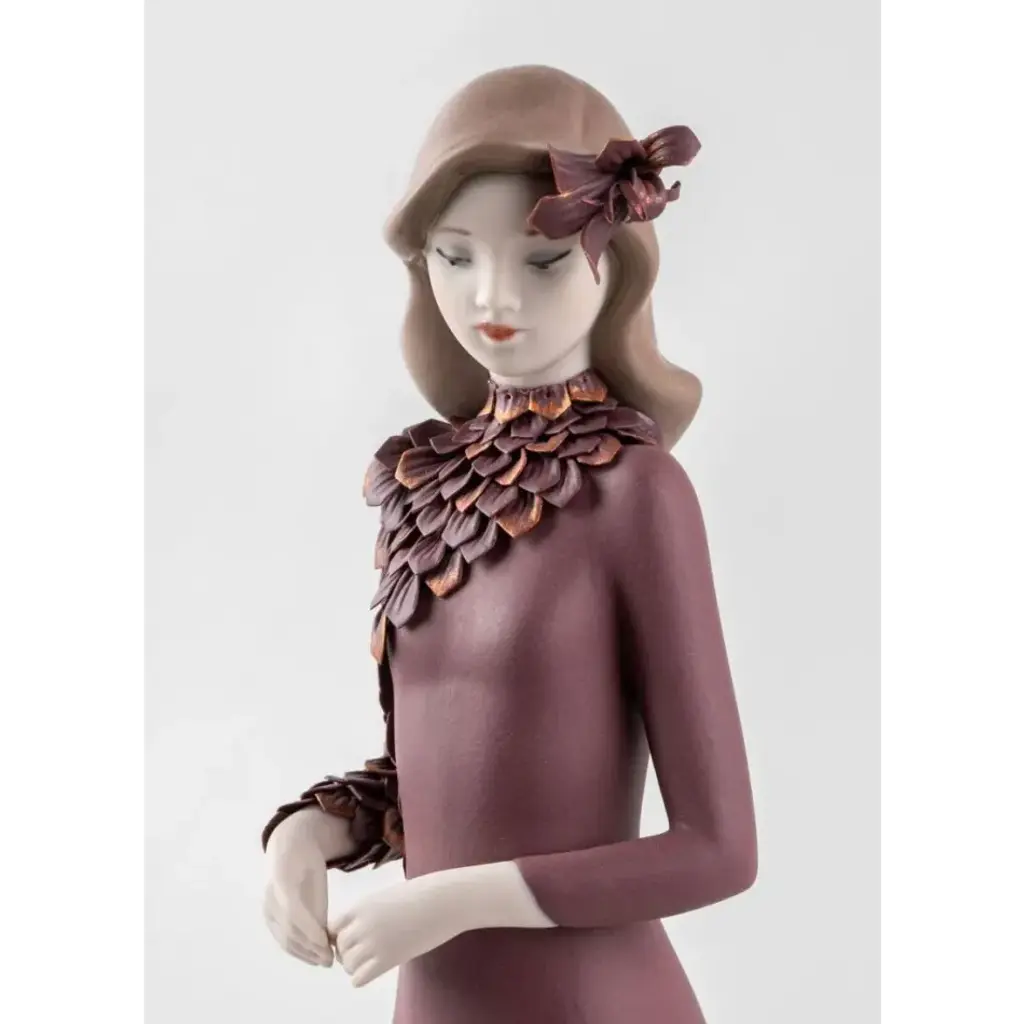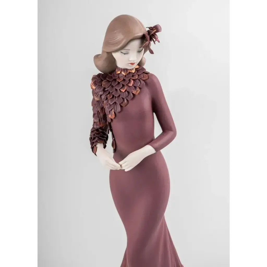 Porcelain sculpture of an elegant lady from the Haute Allure collection. An iconic Spanish brand, Lladro is a world leader in the creation of porcelain art. Started by brothers Juan, Jose and Vicente Lladro in 1953, the ceramic figurines were initially inspired by the works of great European manufacturers like Meissen and Sevres. Over time, a unique style was forged, consisting of elongated lines, a revolutionary single-firing method, and soft pastel tones.