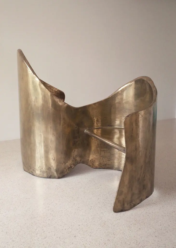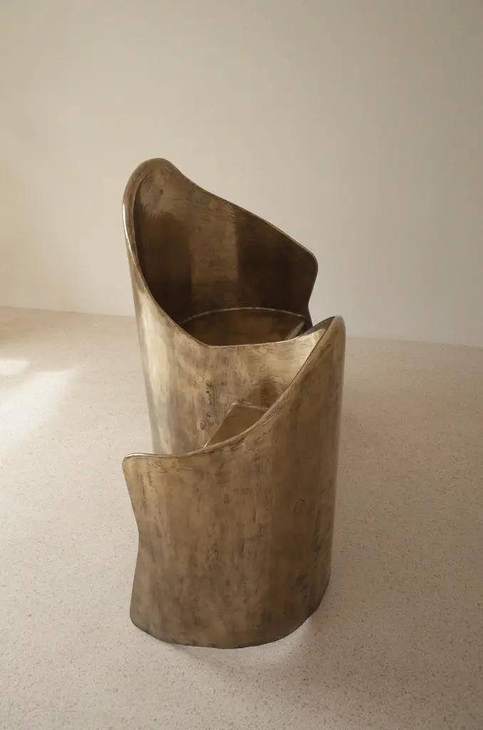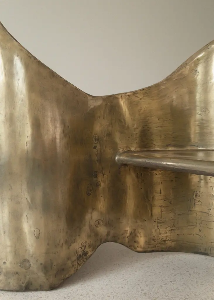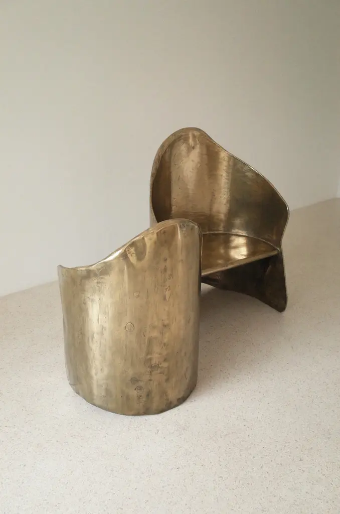 Toi & Moi Loveseat In Polished Brass Resin Over Inox by Atelier ElleryLimited Edition Of 8 Pieces.Dimensions: D 127 x W 160 x H 120 cm.Materials: Inox stainless steel and polished brass resin overlay.Available in different finishes and material options. Prices may vary. Please contact us.‘TOI ET MOI LOVESEAT’ IN POLISHED BRASS RESIN OVER INOXA place to meet, to sit, to connect; yet no two connections are ever the same. Toi et Moi explores the nature of love: one side holds more power, the other remains gentler, quieter, perhaps more innocent.This sculptural seat embodies the delicate tension between form and emotion. It invites closeness yet imposes distance, its central divide shaping the space between two bodies. A physical and metaphorical barrier, it speaks of love that remains unfulfilled - yet for those whose connection is undeniable, the boundary is not a limit but a threshold.With its smooth, curved form, the Toi et Moi Loveseat guides the body into a precise yet unexpected dialogue. The metallic surface, cool to the touch, gradually warms, responding to presence. Though cast in solid brass resin over an inox base, it remains light in its expression, jewel-like in its polish, yet undeniably organic in form.Measuring 160 x 127 x 120 cm, the Toi et Moi Loveseat is handcrafted in Paris, its body meticulously shaped and polished by master artisans. The brass surface captures light with a quiet radiance, emphasizing both the piece’s sculptural presence and the nuances of its materiality.Limited to an edition of eight, each piece stands as an objet d’art, rare and resolute. More than a seat, it is a meditation on intimacy and separation, a sculptural dialogue between form and feeling.Beyond its physical presence, it lingers—an echo of the timeless tensions that shape the human heart.Atelier ElleryMy practice is rooted in architectural form, material tension, and the relationship between object and body. I work primarily with metals—materials that carry weight, memory, and permanence—shaped into sculptural pieces that invite both physical and visual interaction. These objects often explore gravitational dynamics, considering how weight, balance, and form affect the way the body approaches, responds to, or is held by a structure.These forms often explore boundaries: between intimacy and distance, stillness and movement, structure and softness. Many of my works can be touched, sat in, or moved; kinetic elements are introduced to create a sense of calm, presence, and responsiveness. A movement might echo the body’s gesture or rhythm, subtly shifting how one relates to space.I’m interested in how sculpture can function as a site; something to enter into, rest within, or observe quietly. By folding materials around imagined or real bodies, I seek to create objects that hold a charge: sculptural presences that feel at once solid and open, architectural and emotional.Each piece is a study in form, but also feeling; how a curve invites approach, how a divide becomes a threshold, how metal, when worked by hand, retains the trace of care.