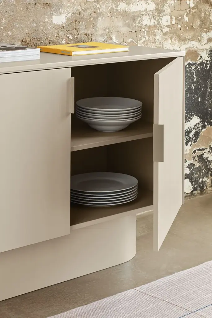 Totem is a lacquered MDF dresser with two swing doors and storage compartments.Totem is a collection that, with its almost monolithic appearance, invites us to contemplate each piece as if it were a work of sculpture, transcending the boundaries between function and form.