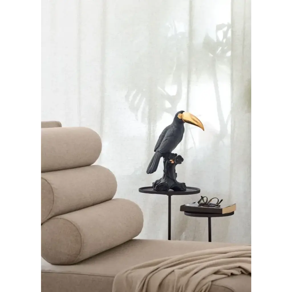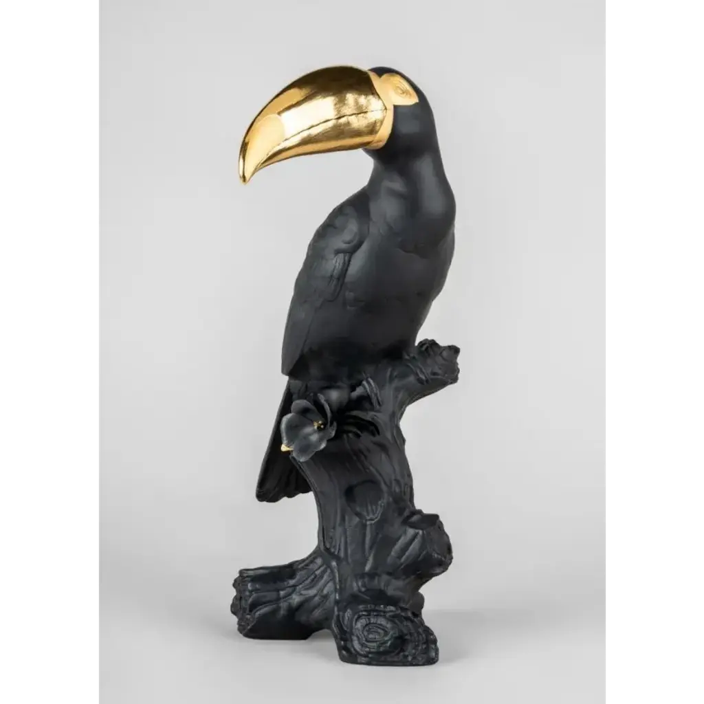 Porcelain sculpture portraying one of the most beautiful tropical birds with the characteristic decoration of the Boldblack collection in black and gold. An iconic Spanish brand, Lladro is a world leader in the creation of porcelain art. Started by brothers Juan, Jose and Vicente Lladro in 1953, the ceramic figurines were initially inspired by the works of great European manufacturers like Meissen and Sevres. Over time, a unique style was forged, consisting of elongated lines, a revolutionary single-firing method, and soft pastel tones.