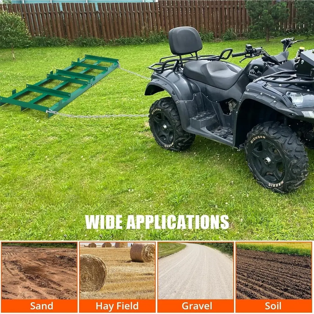 Tow-Behind Lawn Leveling Rake Tool For Atv, Utv, Tractor, And Mower - Green 48 Inch