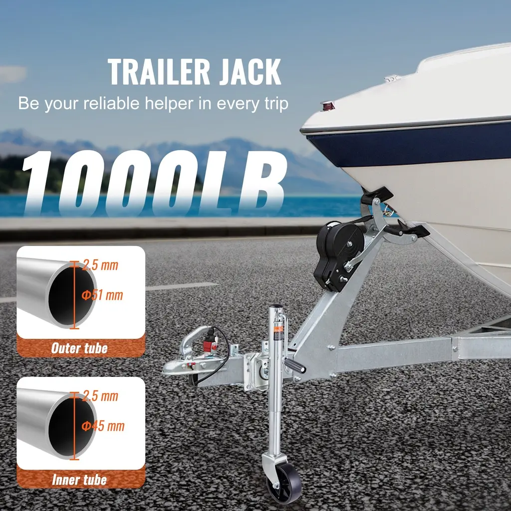 Trailer Jack, Boat Trailer Jack, Bolt-On Trailer Tongue Jack, With Pp Wheel And Handle For Lifting Rv Trailer, Horse Trailer - 1000 Lb Capacity