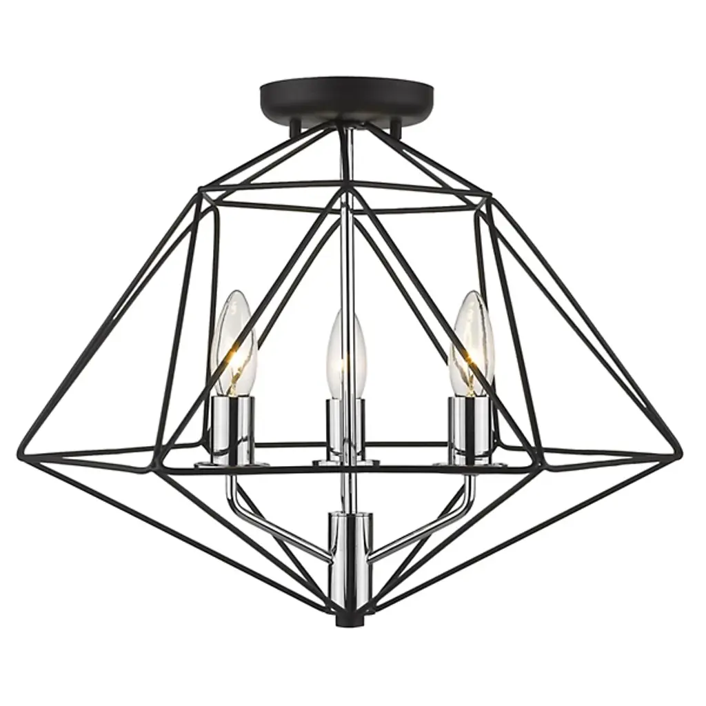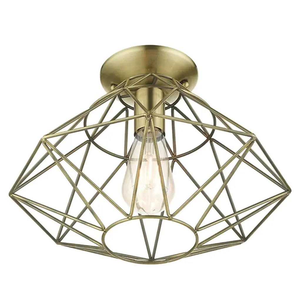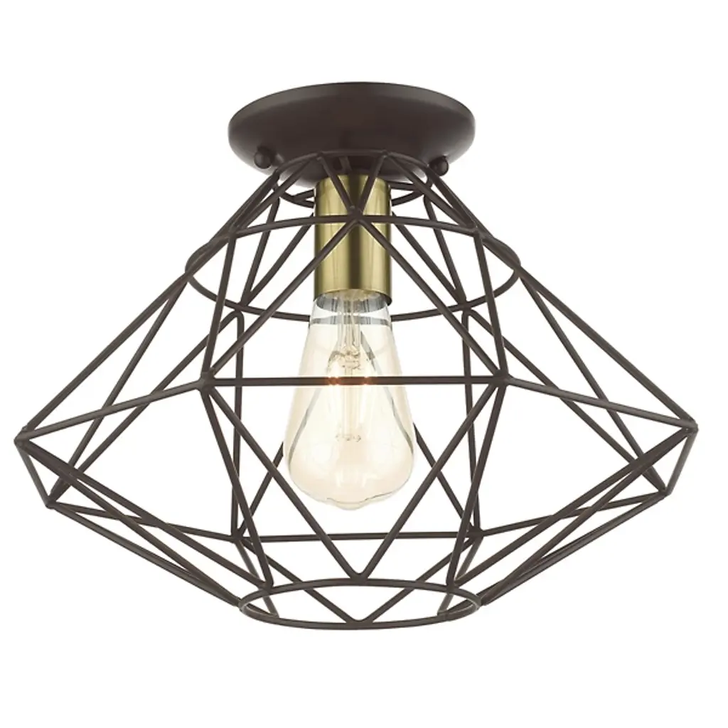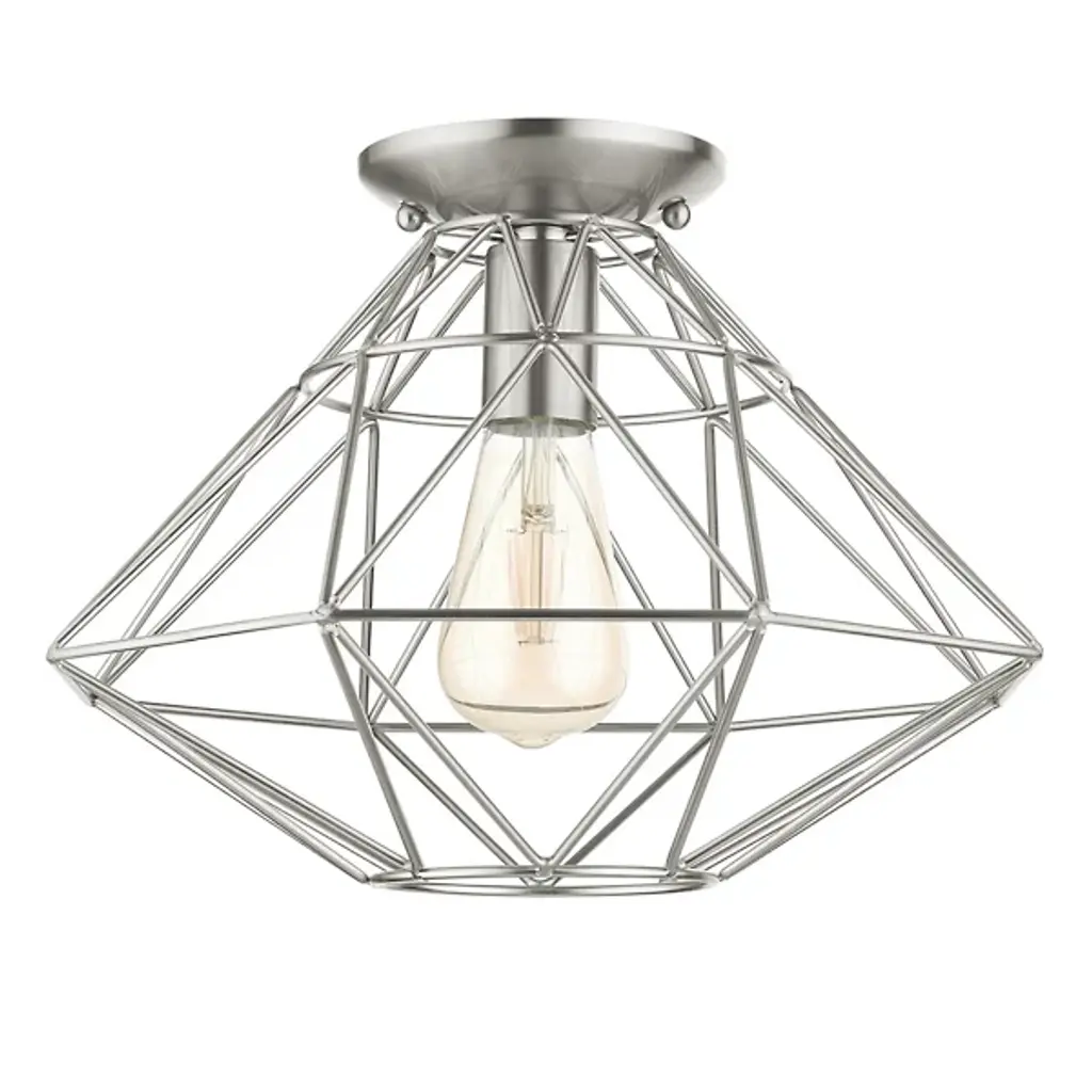 A dazzling diamond realized with pure geometry. The Trent Flushmount from Alder & Ore steps up the contemporary, high-design aesthetic of the home as a piece of functional sculpture. It sits tight to the ceiling with a low-profile canopy. The flush mount offers an impactful visual even with the lights off. Artisans hand-weld the caged structure from a bevy of dynamic shapes. Its shapes come together to create an elegant, inverted diamond, underscored by its open feeling. The open passages of the diamond showcase the delightful bulb. The flush mount turns on to create a filling glow and a wondrous silhouette.