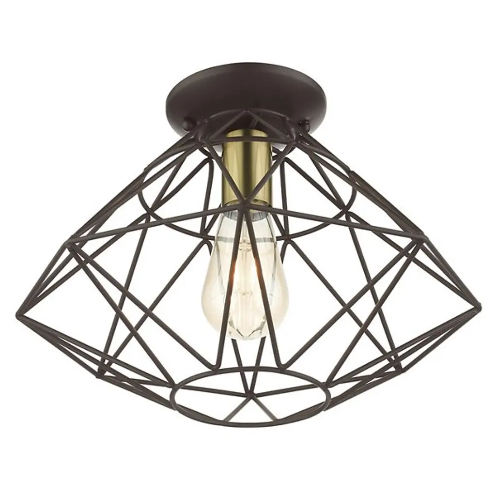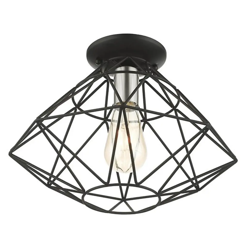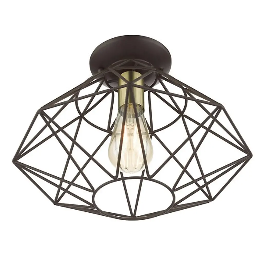 A dazzling diamond realized with pure geometry. The Trent Flushmount from Alder & Ore steps up the contemporary, high-design aesthetic of the home as a piece of functional sculpture. It sits tight to the ceiling with a low-profile canopy. The flush mount offers an impactful visual even with the lights off. Artisans hand-weld the caged structure from a bevy of dynamic shapes. Its shapes come together to create an elegant, inverted diamond, underscored by its open feeling. The open passages of the diamond showcase the delightful bulb. The flush mount turns on to create a filling glow and a wondrous silhouette.