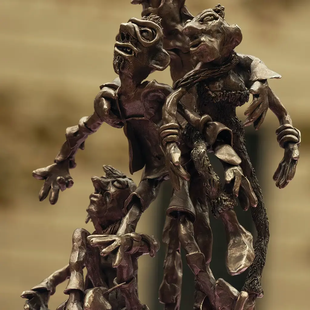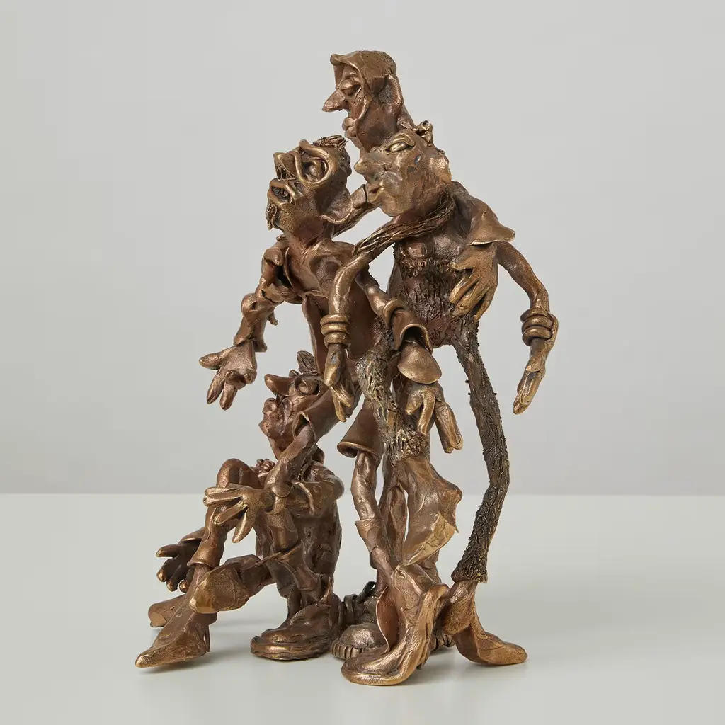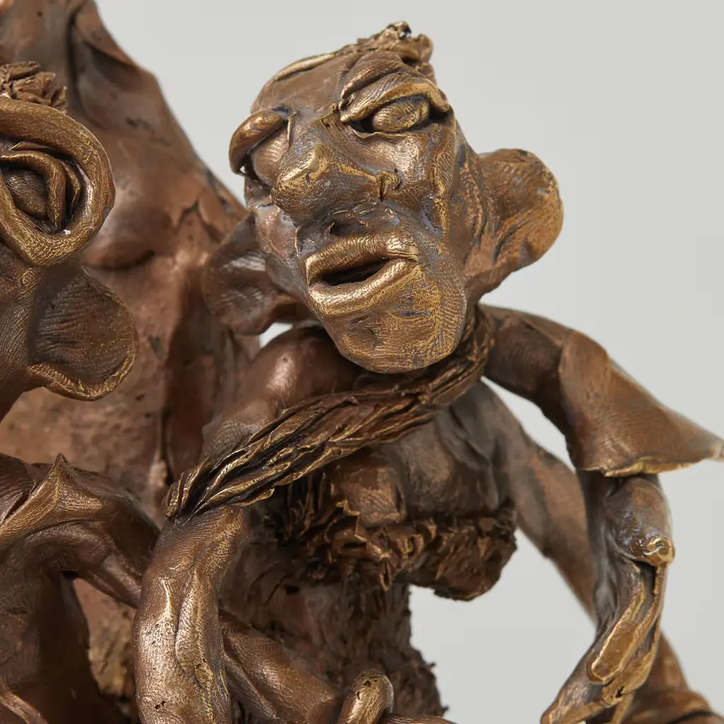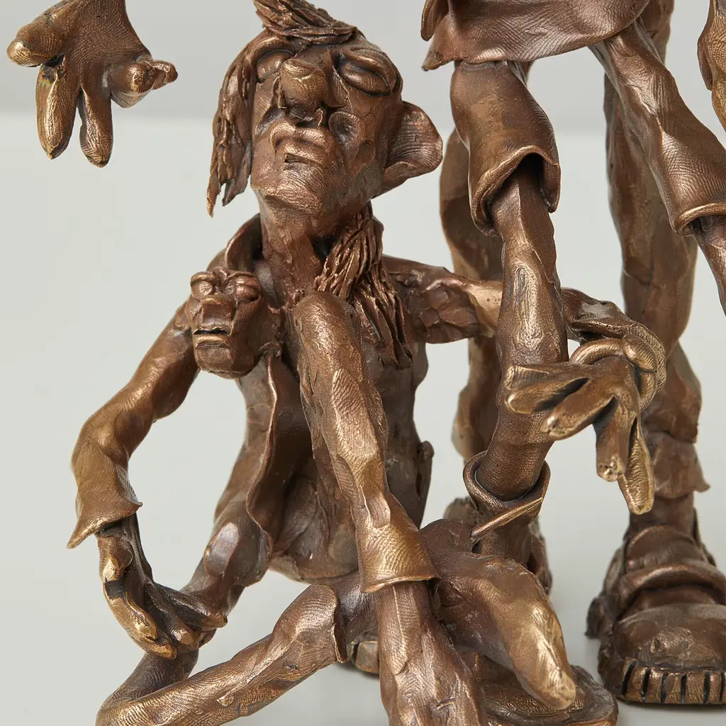 Faces drawn by experiences gather the group of "ugly but cool" subjects composing this bronze sculpture. Part of the Trickynauta Collection - dedicated to these characters determined to face adversity with undefeatable resilience and energy - the sculpture distills feelings of warmth and intimacy with its refined shades and minute details.