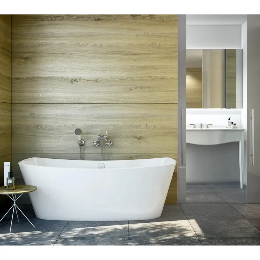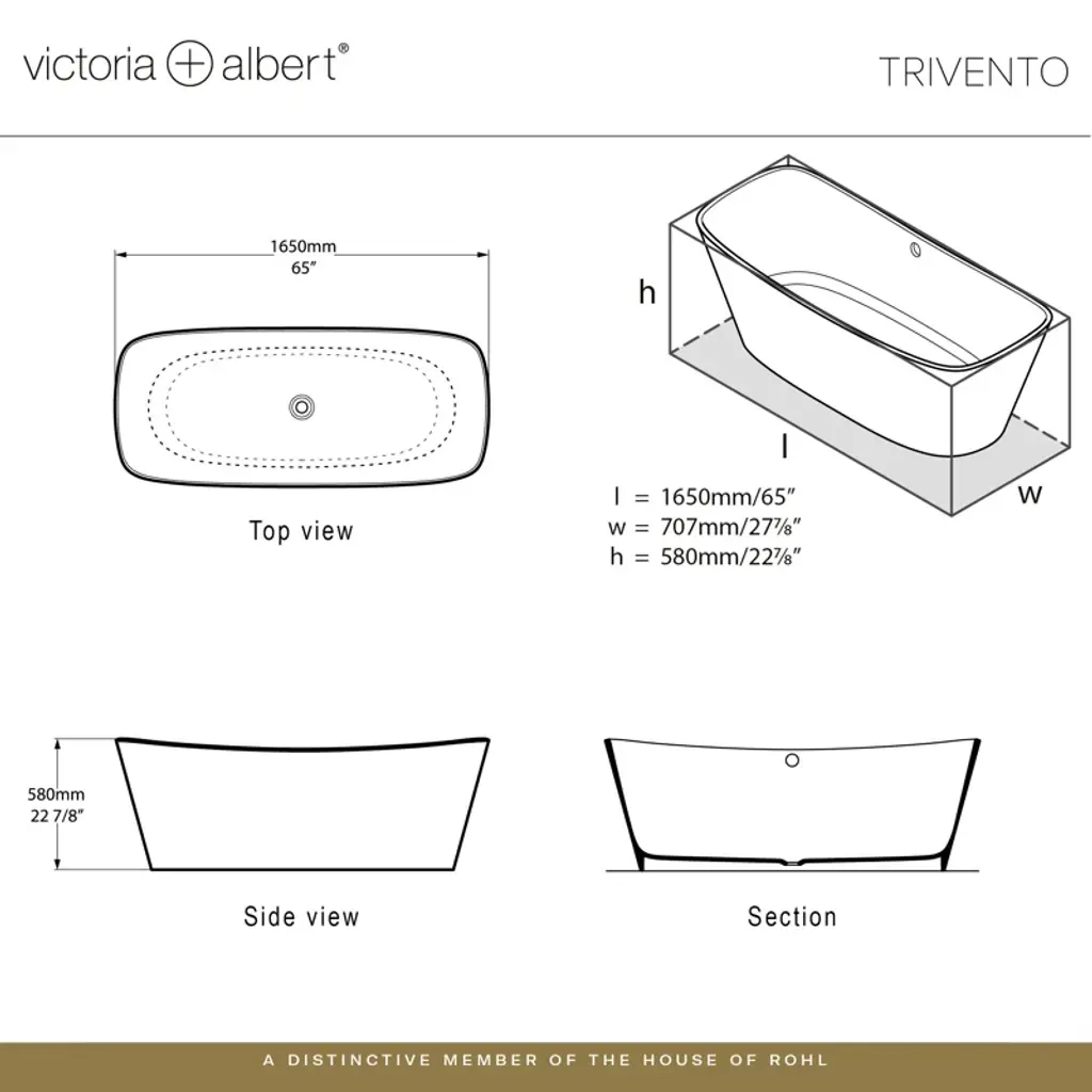 The Trivento reimagines the original French bateau bath as a contemporary sculpture. The nuanced arc of its rim is reminiscent of the vessel-like shape of its classic counterpart, but now with such subtlety and simplicity, it becomes a work of modern art. Dual-ended and designed to be deep, the Trivento is nevertheless a perfect fit for city and country, smaller or larger spaces. Its silhouette is perfect for immersive bathing, as its tapered form is made for leaning back and relaxing. The Trivento is a showpiece of sophisticated simplicity, truly a bath to be sought after.