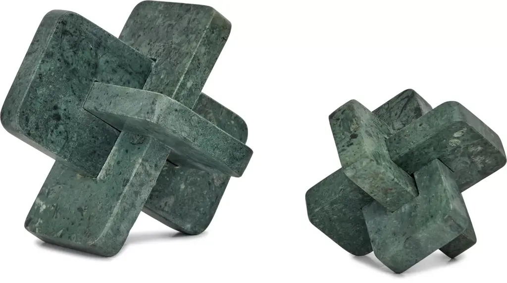 Add artistic intrigue to your space with our Tulane geometric sculpture. Each handcrafted green marble sculpture, available in two sizes, stands as a testament to abstract beauty and contemporary design, perfect for any space seeking a blend of art and sophistication. Please select your size before adding to cart.