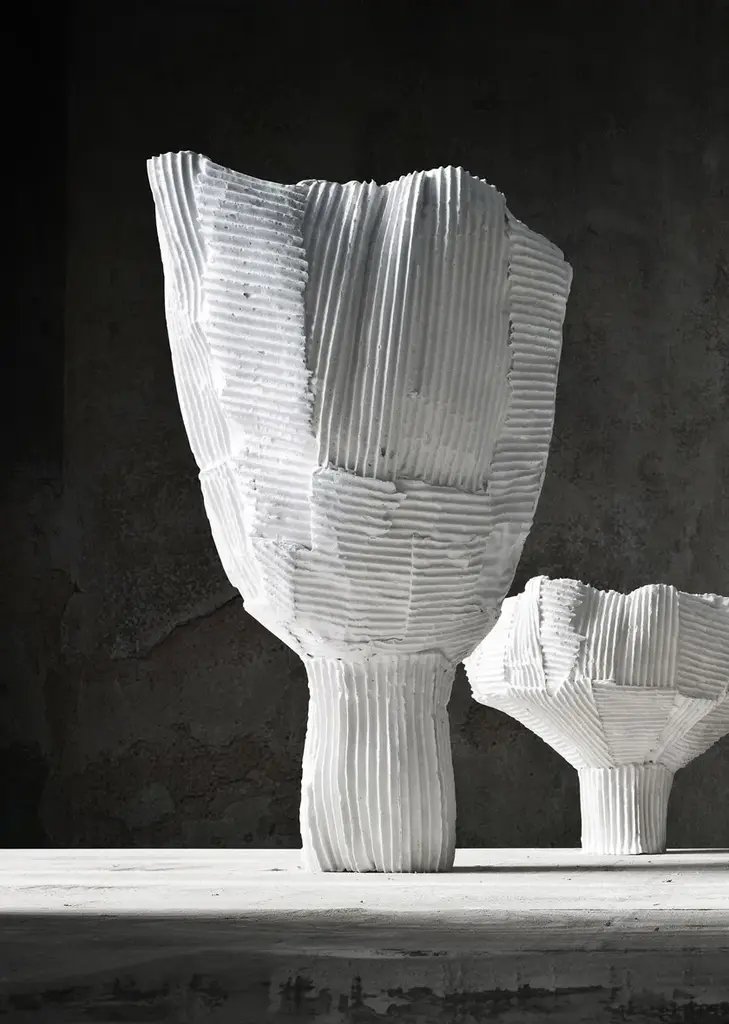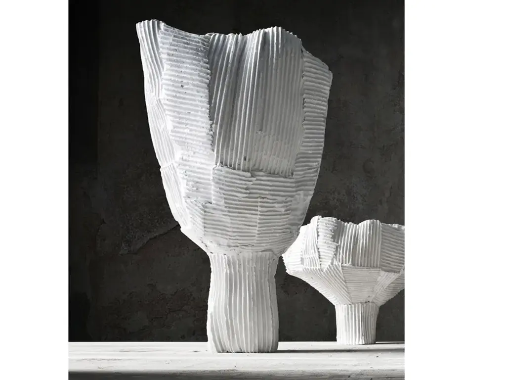A uniquebowl with the elegant shape of a tulip.Finishes: "cartoccio" (striped), smooth or "corteccia" (large stripes).The cartocci in paper clay are sculptures which are always different from one another,unique pieces with a strong personality. They are completely handmade with a long complex procedure and they can vary in size and shape during the making process or the firing. therefore the eventual differences are to be seen as an added value and they prove their exclusiveness.