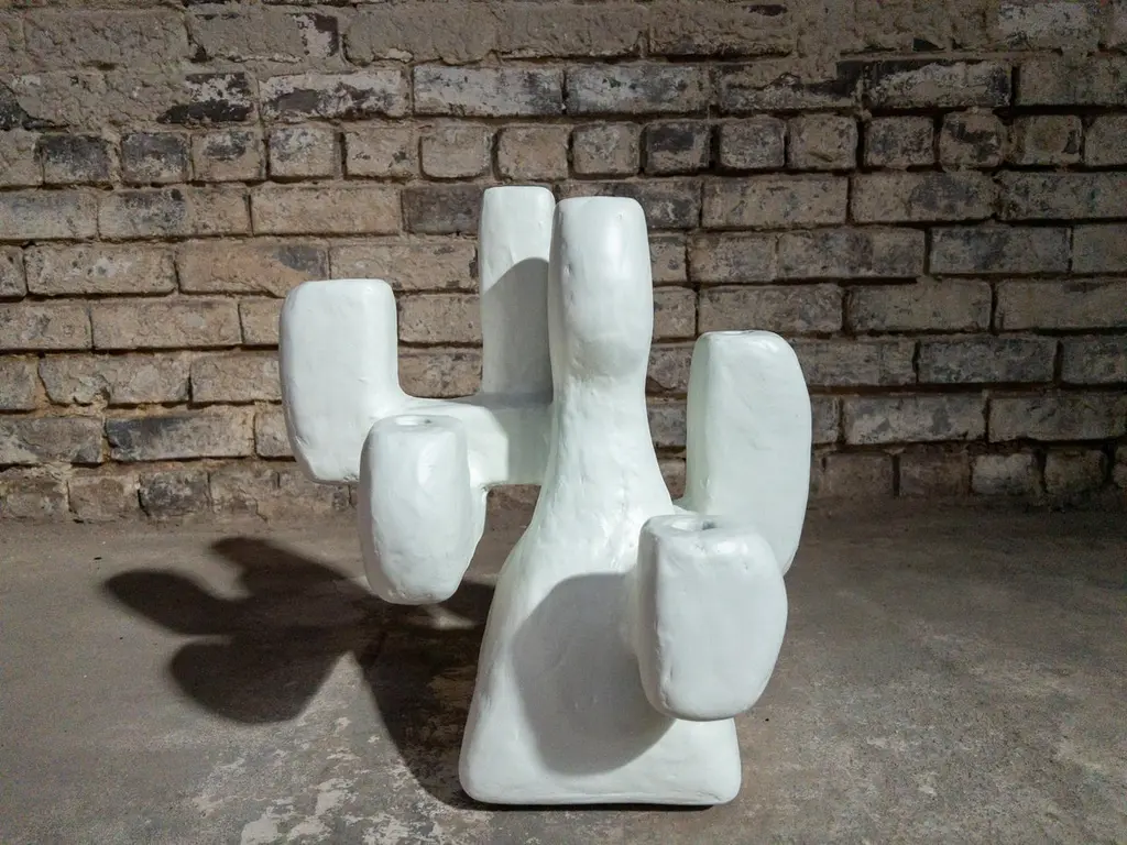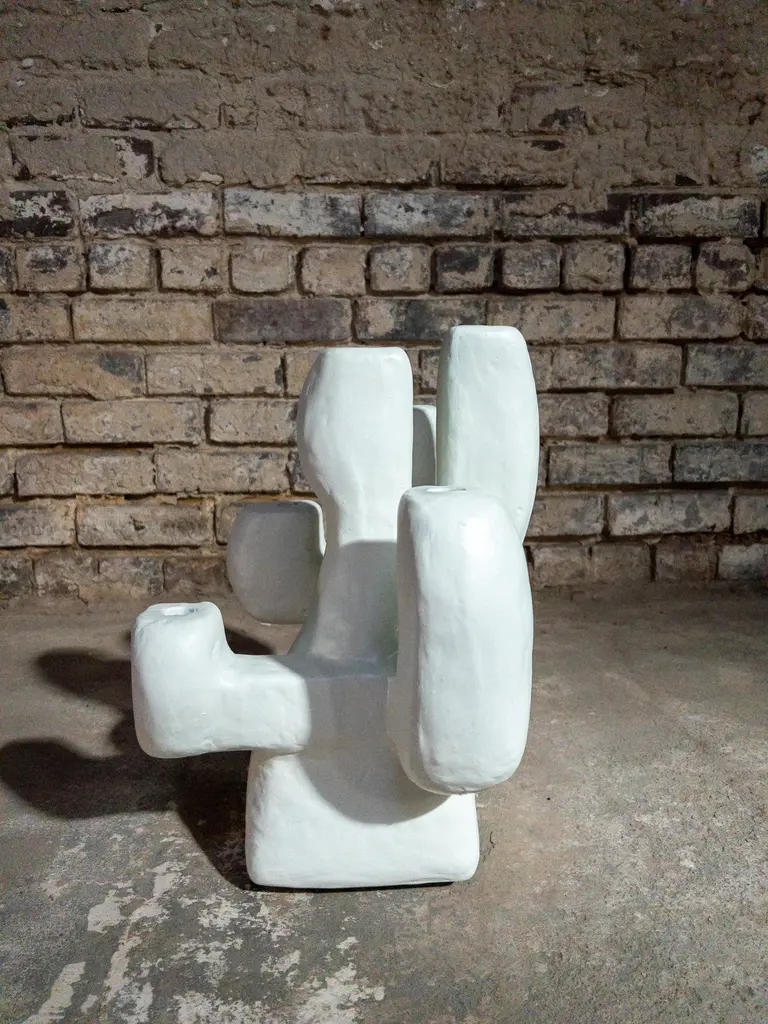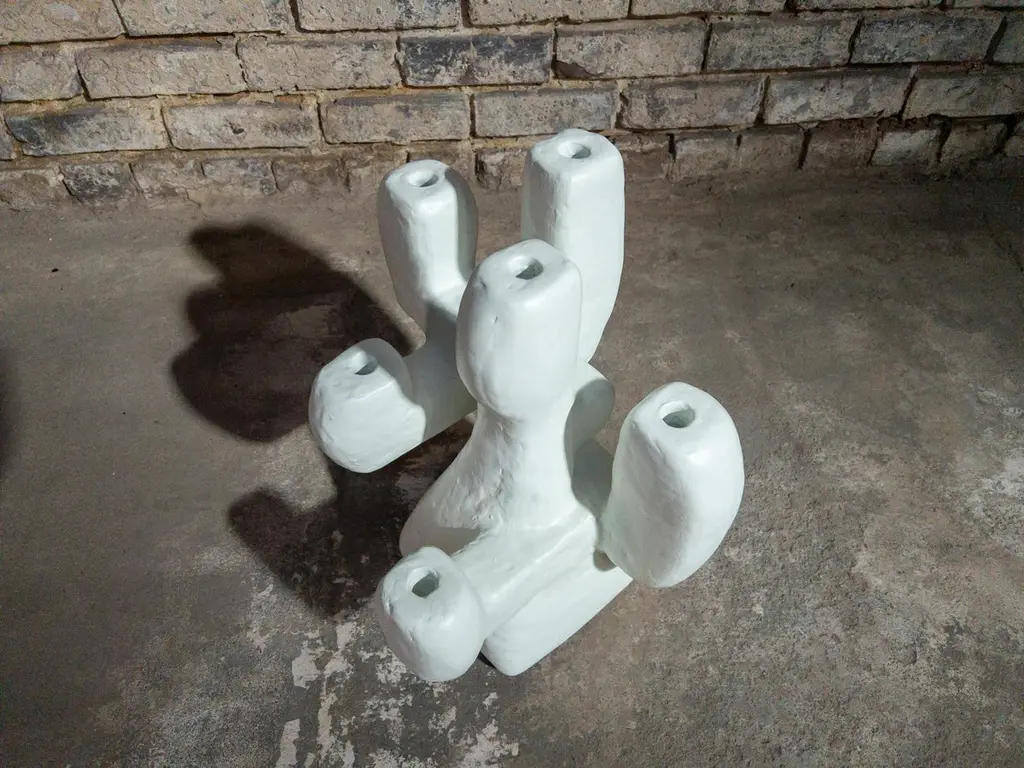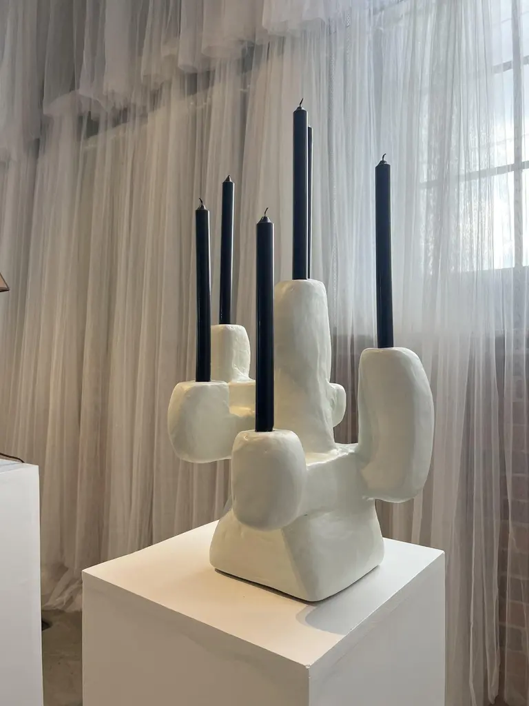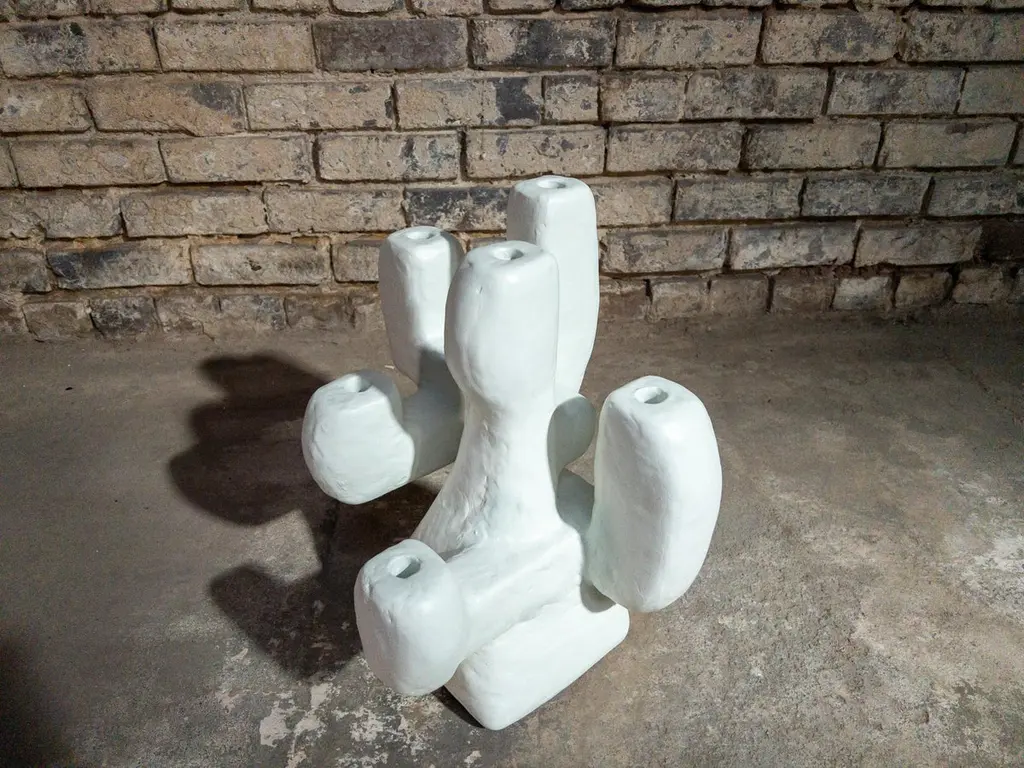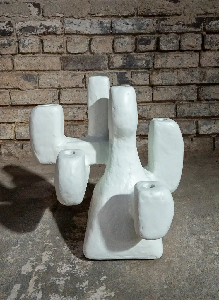 The Tunnel Candelabra by Brent Warr is an evocative fusion of sculpture and function. With its softened geometric limbs and matte white finish, the piece conjures a sense of movement and spatial rhythm. Crafted from a layered composite and sealed with fiberglass, it offers both durability and elegance. Designed to hold multiple taper candles, this bold yet refined centerpiece brings a striking architectural presence to any interior, making it ideal for curated spaces that celebrate collectible design and material artistry.Each piece is made to order and is available in white, black, cream, or custom colors. Brent Warr Studios founder Brent Warr was raised in Georgia, USA and studied at Auburn University’s college of Architecture, Design, and Construction. Before moving to the back to Georgia to start his furniture and lighting studio, he moved to NYC to work for esteemed Interior and Architecture firms Meyer Davis Studio and Yabu Pushelberg. Now located in Bainbridge, Georgia, Warr’s furniture, lighting, sculptures, and interiors projects are defined by a studied balance of fluidity and structure, composition and function. His practice is both intuitive and informed by an understanding of history, process, and materials. Above all, Warr’s guiding principles are humor and storytelling. Brent Warr has been featured in Interior Design Magazine, Architectural Digest, Elle Decor, and Vogue Living to name a few.