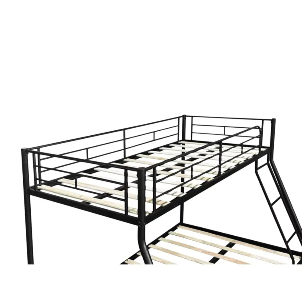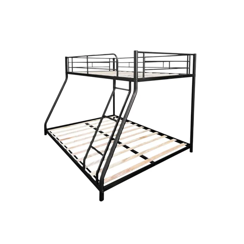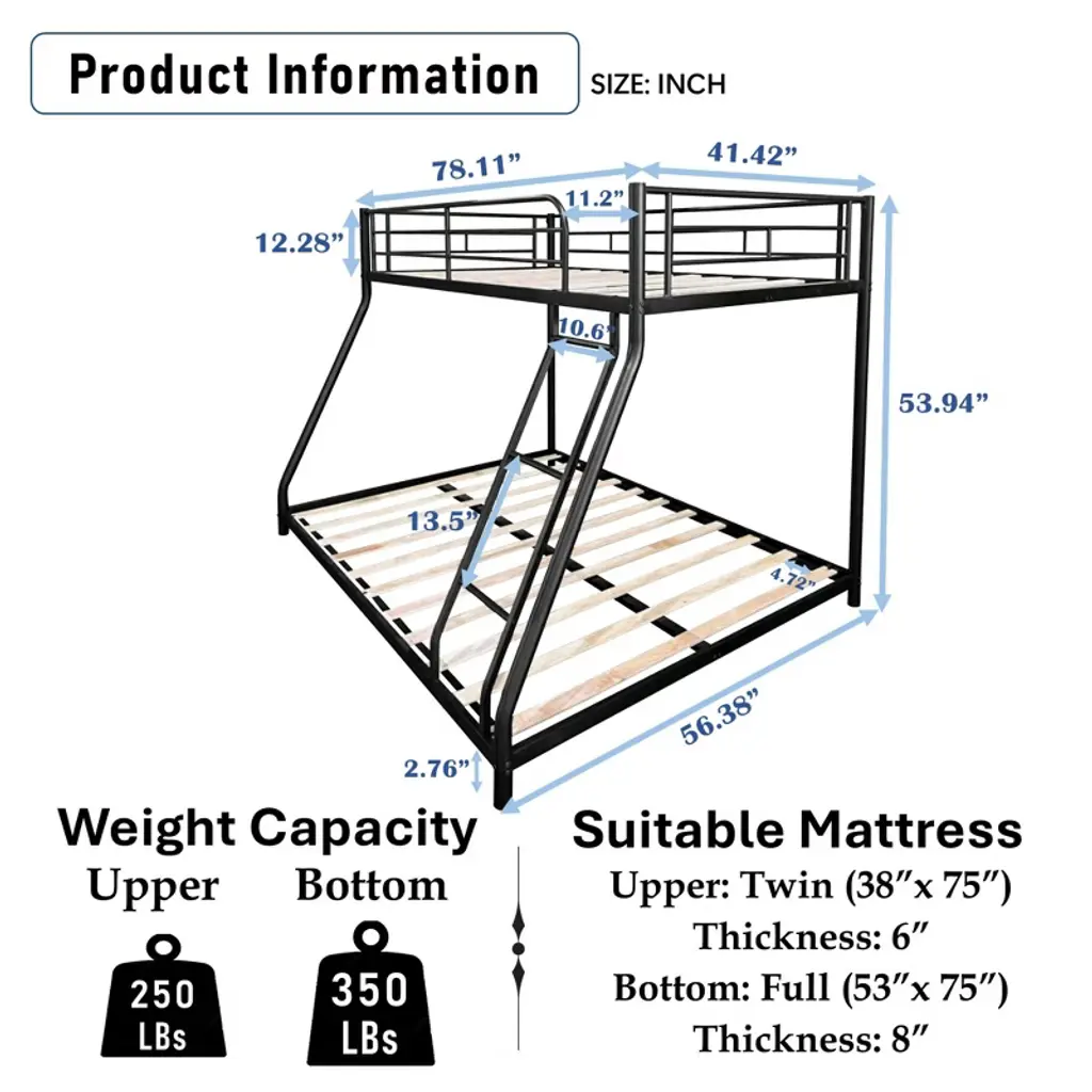 Product Features Sturdy and Durable Metal Frame: Experience the difference of a bunk bed with a durable design and strong support. Crafted from high-quality metal, this bed is not just a stylish addition to your space – it's a fortress of durability. The robust framework ensures that your bed stands tall and secure, providing a solid foundation for a good night's sleep.Safety Guaranteed: Featuring robust guardrails and built-in ladder offer extra security to prevent any accidental falls. Successfully passing the GCC (General Certificate of Conformity) tests protects you from hazard material and accidental harm.Noise-free Wood Slats: Upgrade to whisper-quiet nights with our bunk bed equipped with wooden slats and center supporting bar. The natural material not only enhances the bed's durability but also ensures a noise-free environment. Enjoy a serene atmosphere where your night's rest is undisturbed by the usual sounds, providing a quiet sanctuary for relaxation.Low-Profile Full Size Bottom Bed: The low profile not only ensures easy access to the bed but reduces the risk of accidents. More than that, accompanied with the full-sized bottom bed, the low-profile design maximizes the sleeping comfort during the nighttime.Fast Assembly: Each order comes with clear and straightaway assembly instruction guide, and all necessary tools are included in the package. Just few steps, you can enjoy the comfortable bed immediately. Descriptions Experience the best of both worlds with our bunk bed that seamlessly blends durability and safety. The sturdy and durable metal frame, crafted from high-quality metal, serves as a fortress of strength for your bedroom. This robust framework ensures a secure and tall structure, offering a reliable foundation for a restful night's sleep. Safety is paramount with our bunk bed, featuring robust guardrails and a built-in ladder for extra security, preventing accidental falls. Successfully passing GCC (General Certificate of Conformity) tests guarantees a hazard-free and secure sleep environment, prioritizing your peace of mind.Upgrade to a whisper-quiet night's sleep with our bunk bed's noise-free wood slats with center supporting bar. The wooden slats not only enhance durability but also create a serene and noise-free atmosphere. Enjoy uninterrupted rest in a quiet sanctuary, free from the usual sounds that can disrupt your sleep. Furthermore, the combination of a low-profile design and a spacious full-size bottom bed maximizes sleeping comfort during the nighttime, making our bunk bed a comprehensive solution for a safe, durable, and peaceful sleep environment.Elevate your bunk bed experience with a reliable full-length guardrail. Every night it provides a secure barrier, preventing accidental falls during sleep, offering peace of mind for parents.Noise-Free Wood Slats with Strong Supporting BeamExperience unmatched comfort and durability with our bunk bed featuring premium wood slats and a robust supporting beam. Enjoy consistent mattress support, enhanced stability, and lasting quality for a restful night's sleep. Elevate your bedroom with this reliable and stylish sleeping solution.Low Profile Increases Stability and SafetyA low-profile design stabilizes the whole structure and ensures easier access to the top bunk, reducing the risk of accidental falls and providing a safer sleep environment for your loved ones.
